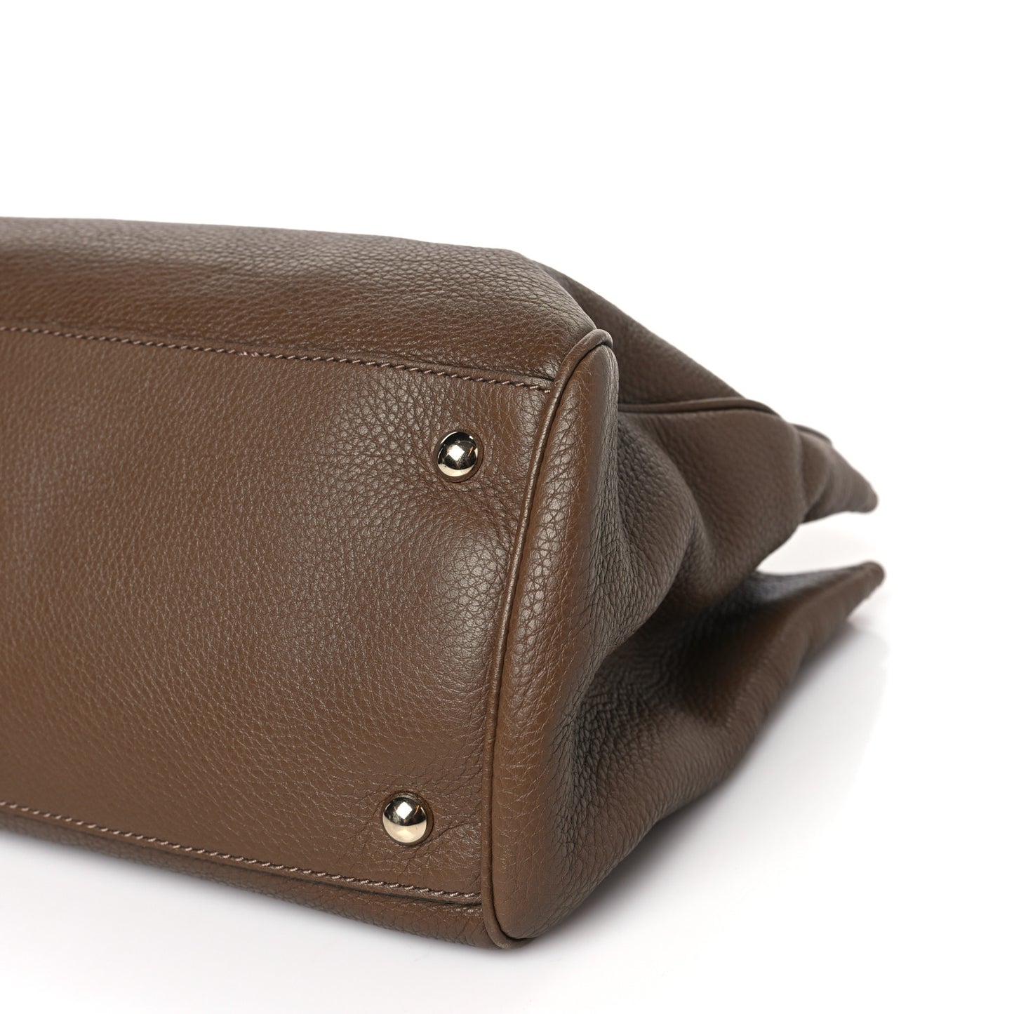 This is an authentic GUCCI Pebbled Calfskin Medium Bamboo Shopper Tote in Acero. This chic tote is crafted of textured calfskin leather in brown. The bag features genuine bamboo top handles, a detachable shoulder strap and polished light brass hardware. The top is open to a natural fabric interior with a zippered compartment, zipper and patch pockets.Follow this item for alerts. Gucci is a registered trademark of Gucci. FASHIONPHILE is not affiliated with Gucci.