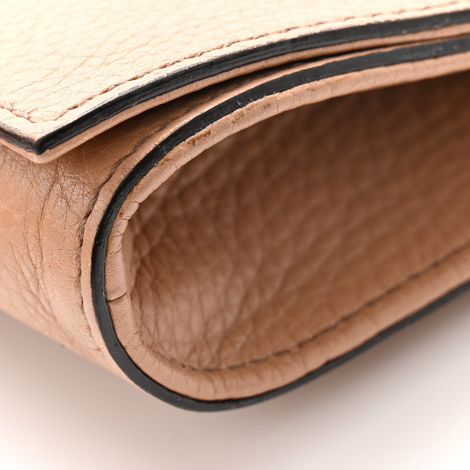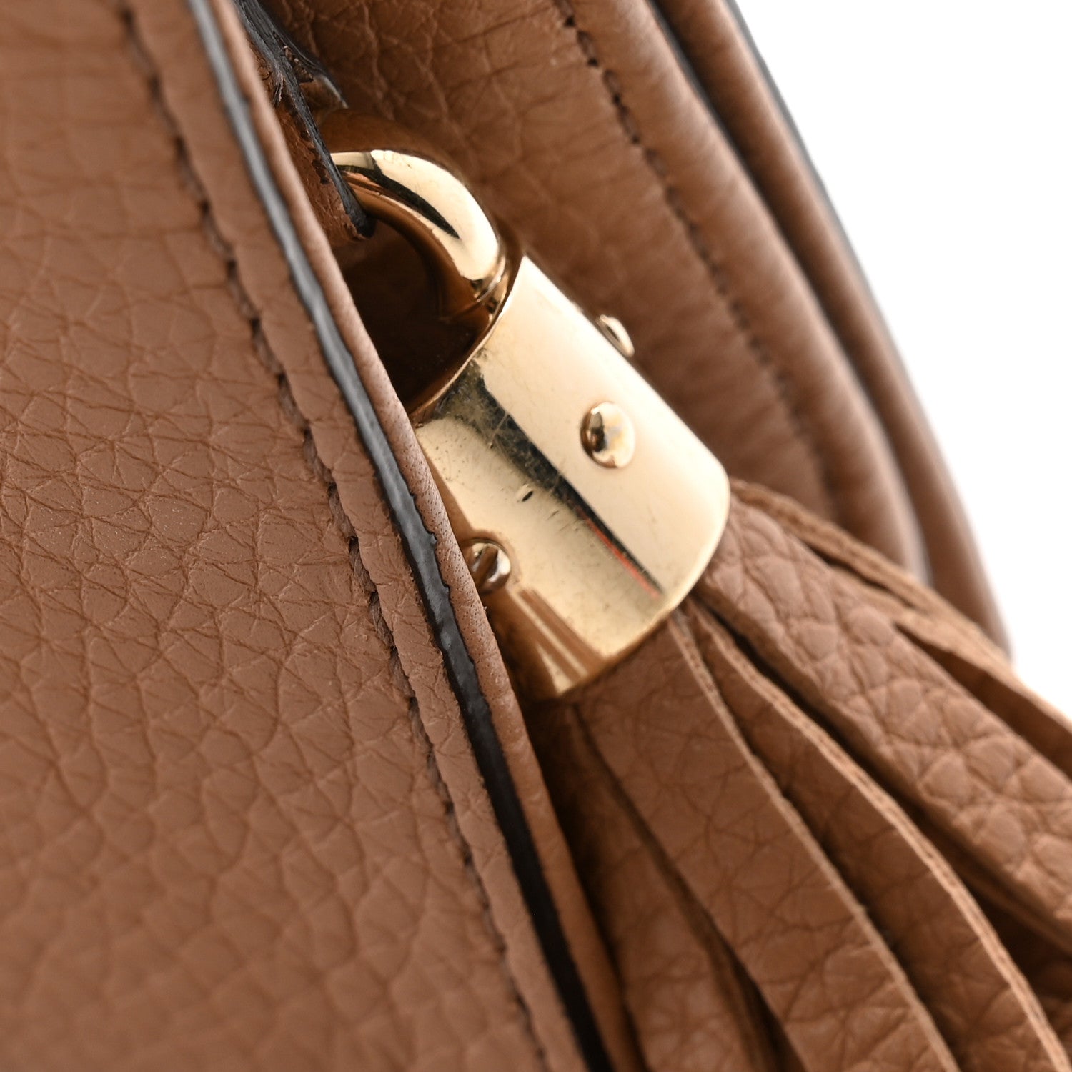 This is an authentic GUCCI Pebbled Calfskin Medium Soho Clutch in Camelia. This stylish clutch is crafted of richly grained calfskin leather in rose beige, with an interlocking GG logo stitched on the front, and a removable light gold-knobbed tassel. The facing flap opens to a natural fiber interior with zipper and patch pockets. This is an excellent clutch for day or evening, with the sophisticated style of Gucci!Follow this item for alerts. Gucci is a registered trademark of Gucci. FASHIONPHILE is not affiliated with Gucci.