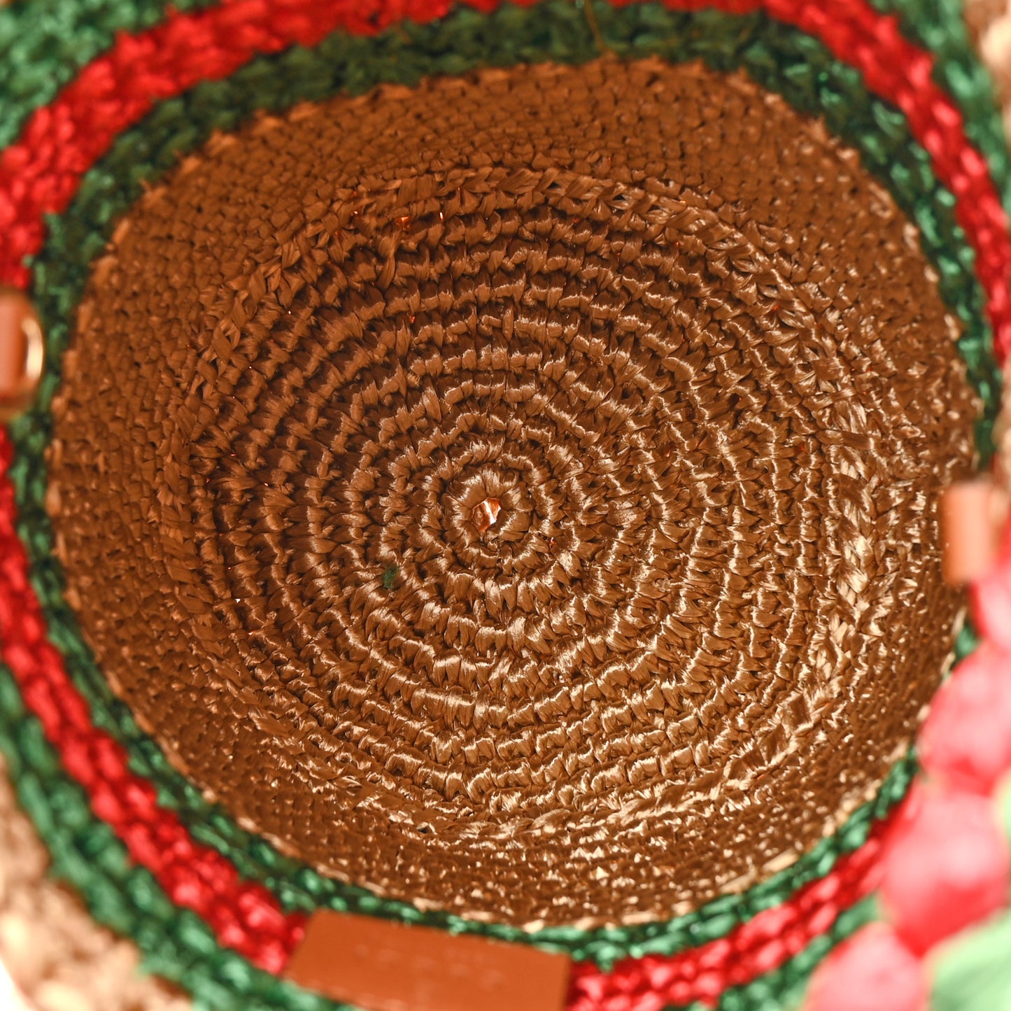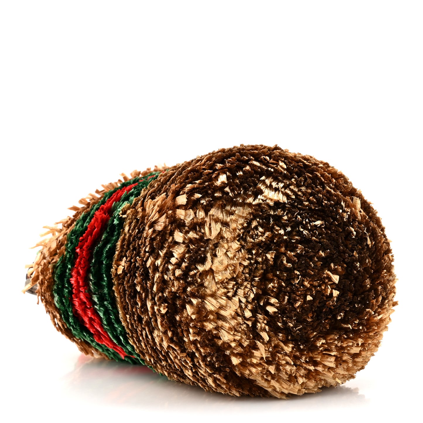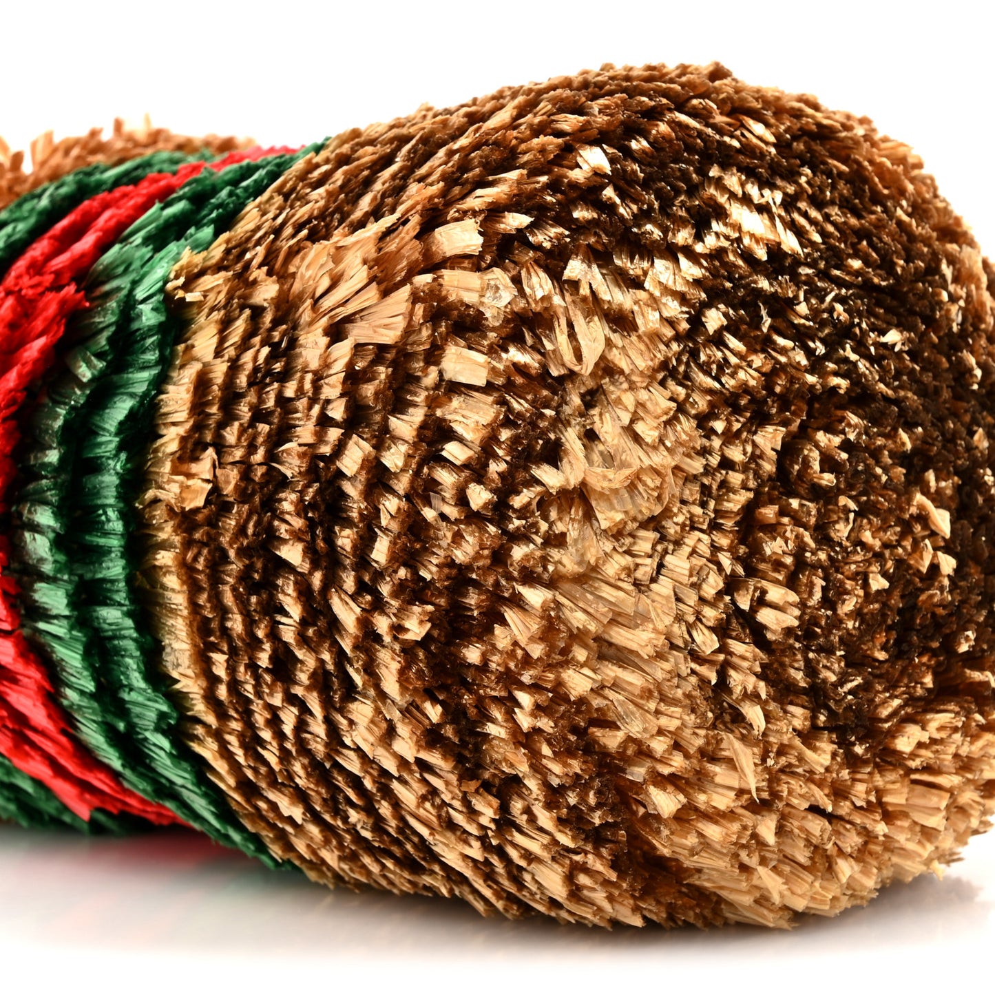 Raffia Fringe GG Top Handle Bag Bronze Natural Red Green