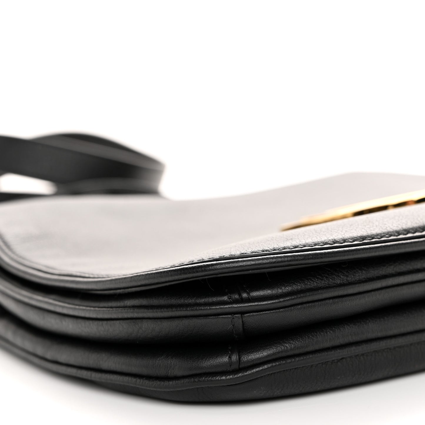 Roxy Calfskin Web Medium Blondie Shoulder Flap Bag Black