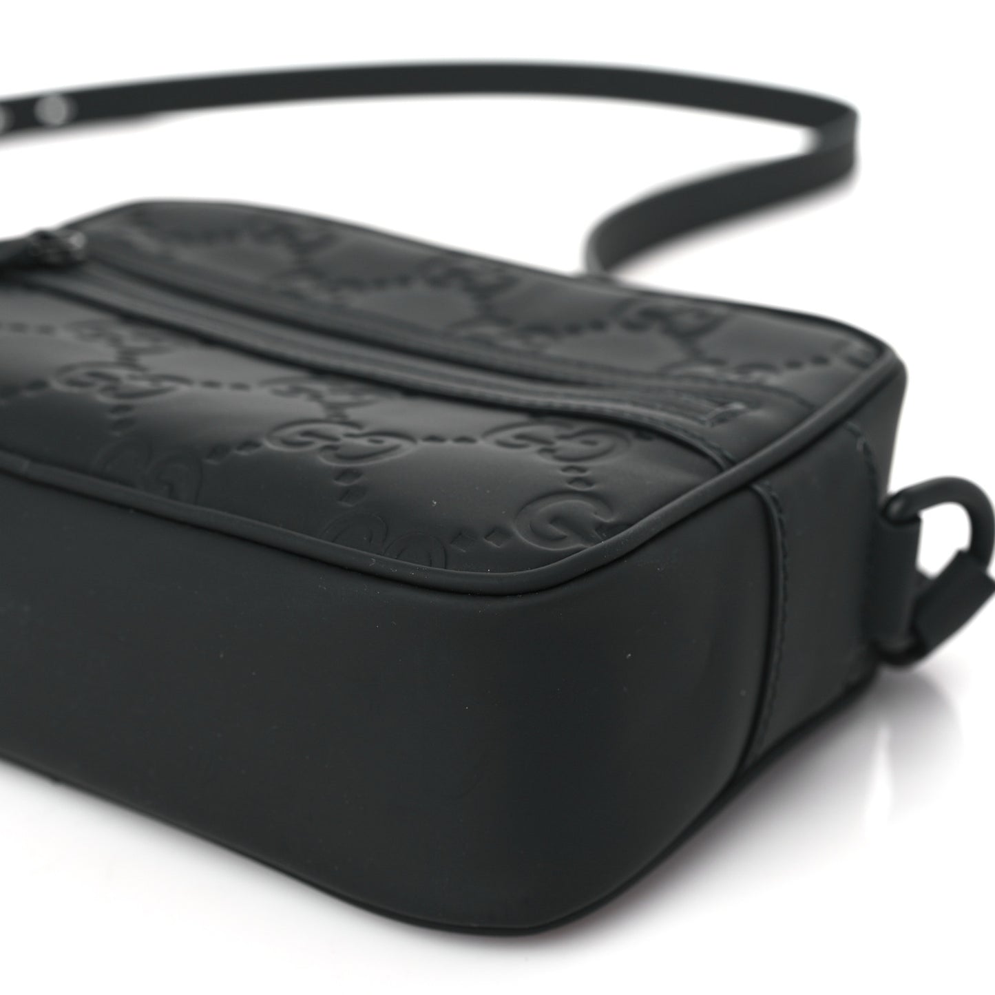 Gucci/ Bags/ Shoulder Bags /Gucci Rubber Effect Calfskin GG Mini Crossbody Bag Black