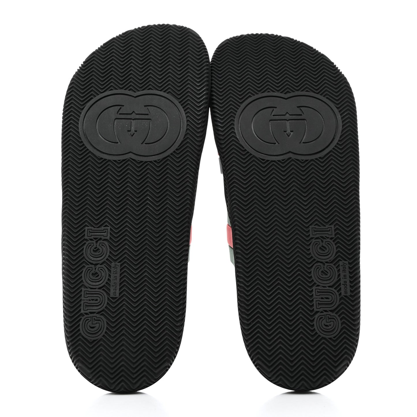 This is an authentic pair of GUCCI Rubber Web Mens Slide Sandals size 10 in Green and Red. These stylish sandals are crafted of multicolored rubber. They feature a black rubber base with two crossover Gucci web bands in classic red, navy blue and green.Follow this item for alerts. Gucci is a registered trademark of Gucci. FASHIONPHILE is not affiliated with Gucci.