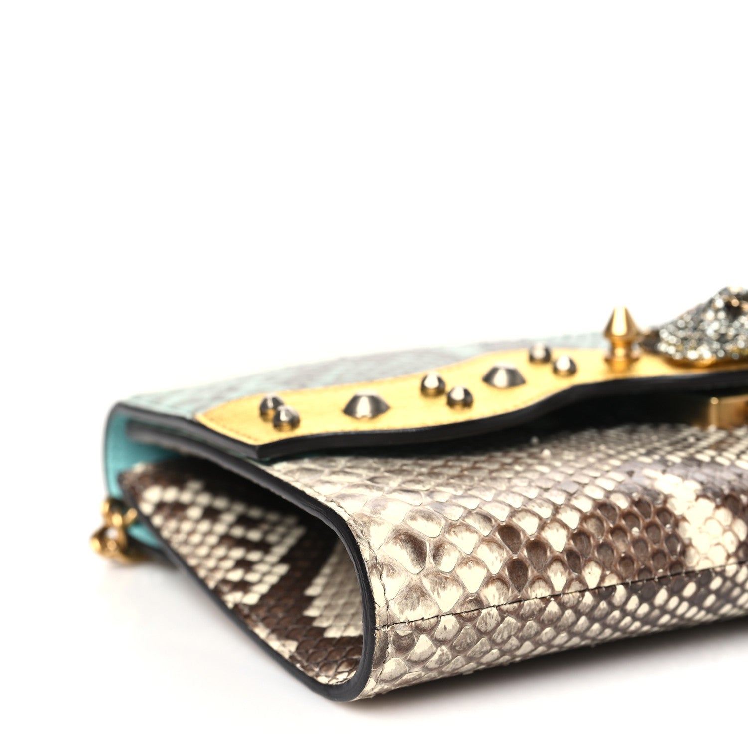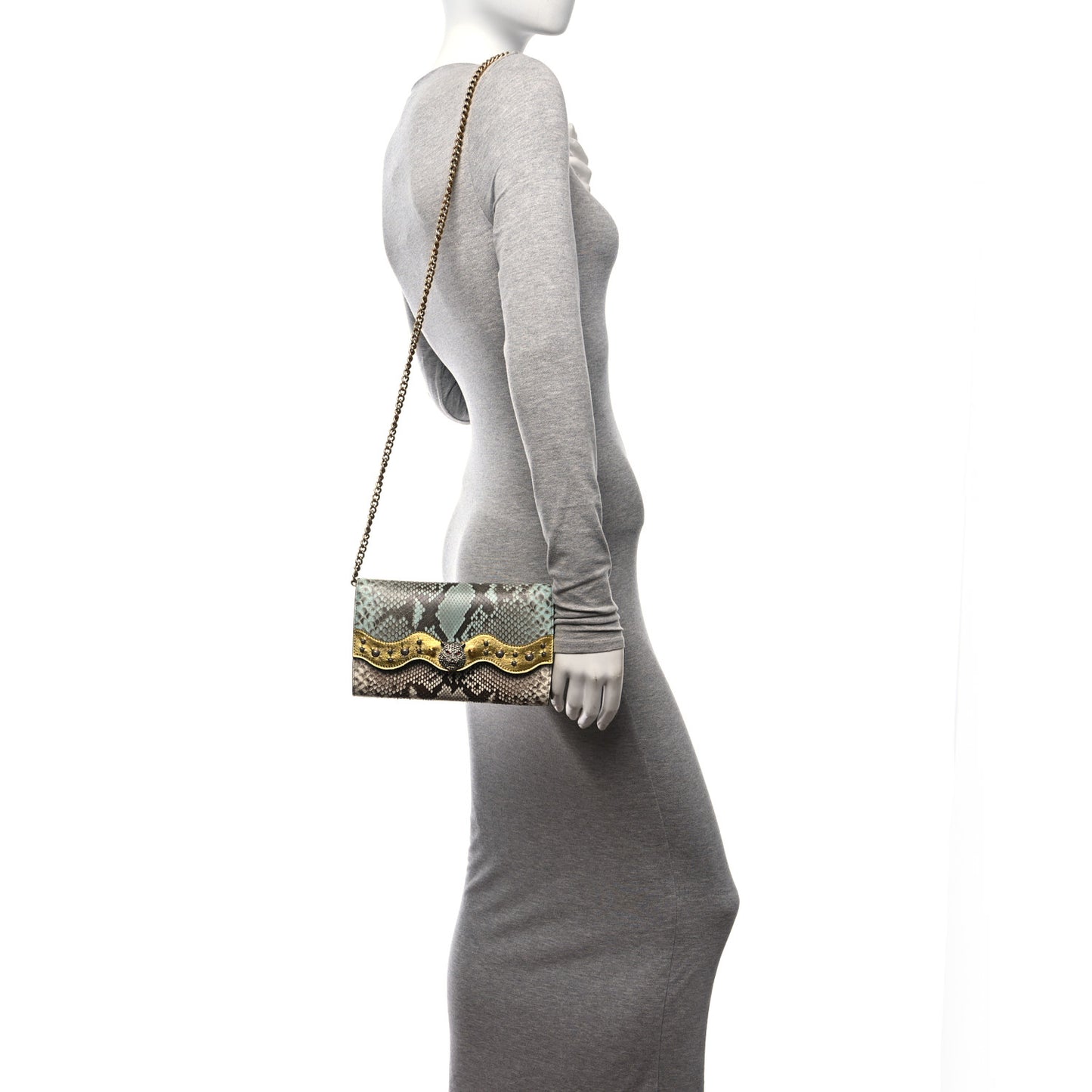 Gucci/ Bags/ Shoulder Bags /Gucci Snakeskin Animalier Broadway Clutch Blue Beige