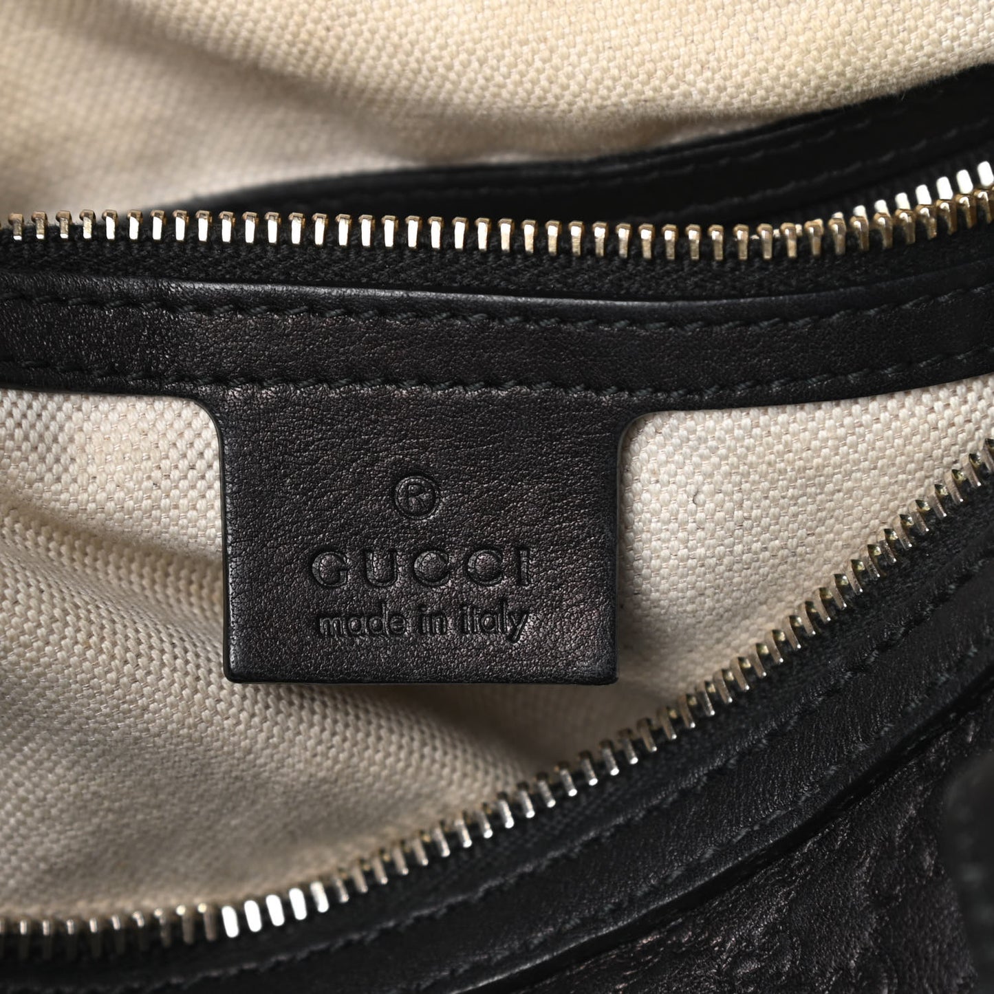 This is an authentic GUCCI Soft Microguccissima Medium Nice Boston in Black. This chic Boston bag is finely crafted of black Microguccissima embossed leather. The bag features rolled leather top handles, an optional leather shoulder strap, polished brass hardware and leather trim. The top zipper opens to a beige coarse linen interior with zipper and patch pockets. This is an excellent bag that is ideal for day with the stylish sophistication of Gucci!Follow this item for alerts. Gucci is a registered trademark of Gucci. FASHIONPHILE is not affiliated with Gucci.