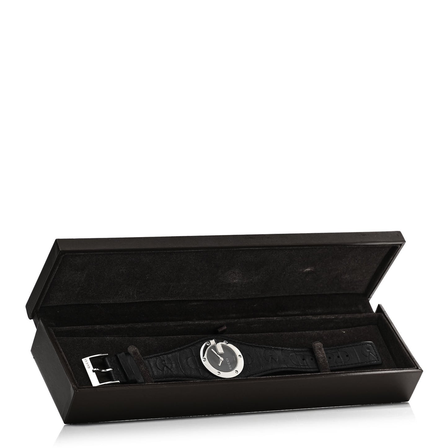 This is an authentic GUCCI Stainless Steel Calfskin 31mm 104 Quartz Watch Black. The watch is crafted of stainless steel and features a black dial, silver hands, black calfskin strap, sapphire crystal, and a quartz movement.Follow this item for alerts. Gucci is a registered trademark of Gucci. FASHIONPHILE is not affiliated with Gucci.