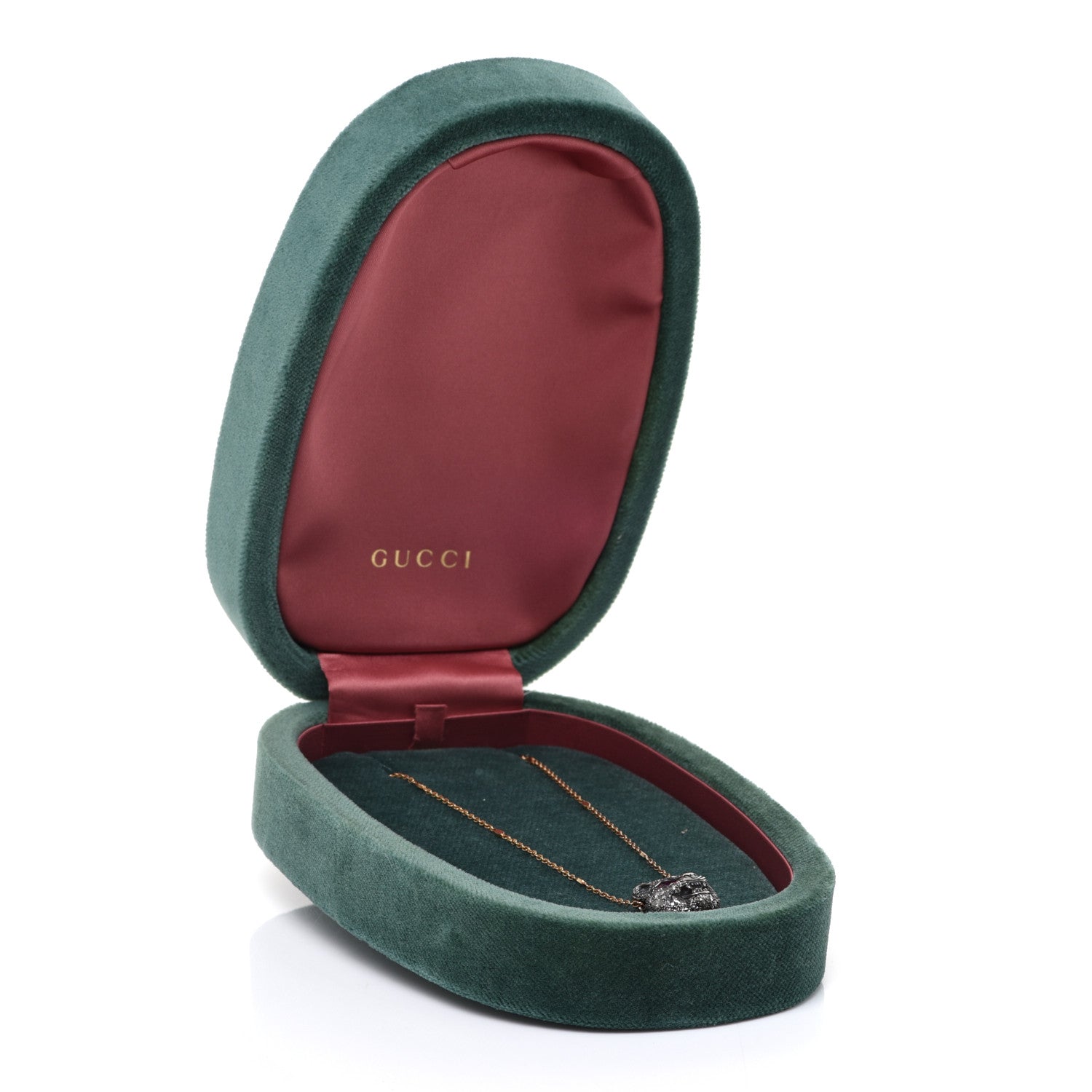 Gucci/ Jewelry/ Necklaces /Gucci Sterling Silver 18K Yellow Gold Diamond Ruby Le Marche Des Merveilles Feline Pendant Necklace