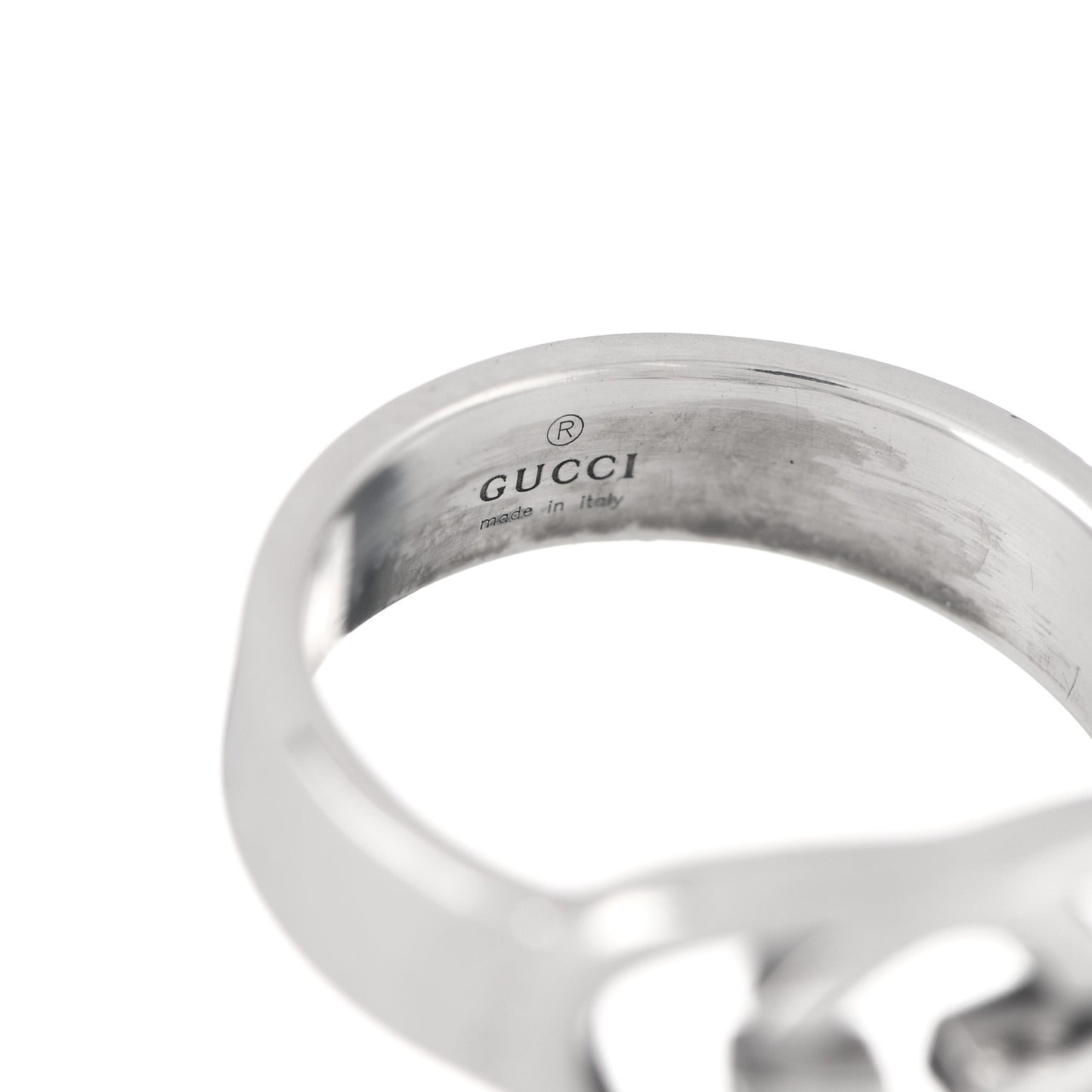 This is an authentic GUCCI Sterling Silver Interlocking G Ring size 51 or 5.75. The ring is crafted of sterling silver and features the iconic interlocking GG logo on a polished silver band.Follow this item for alerts. Gucci is a registered trademark of Gucci. FASHIONPHILE is not affiliated with Gucci.