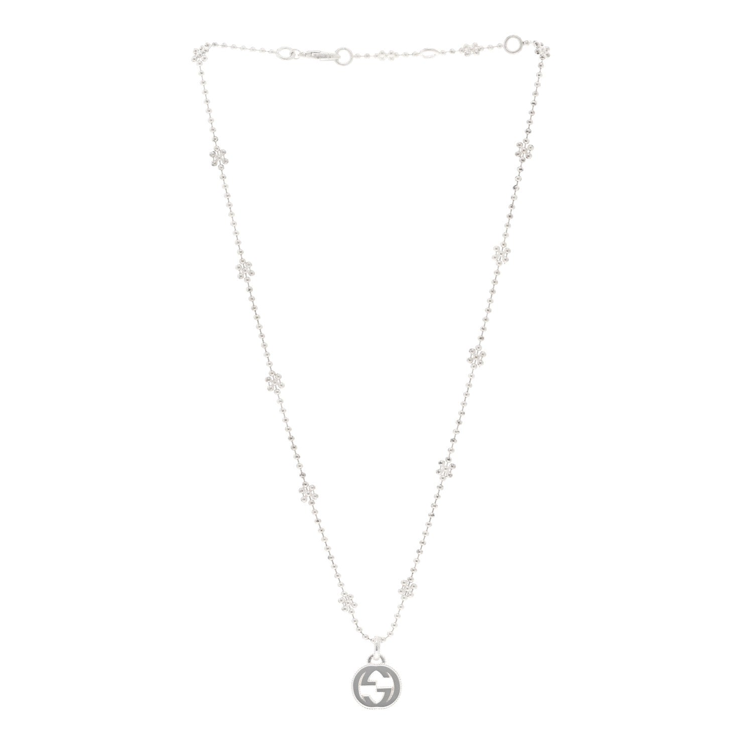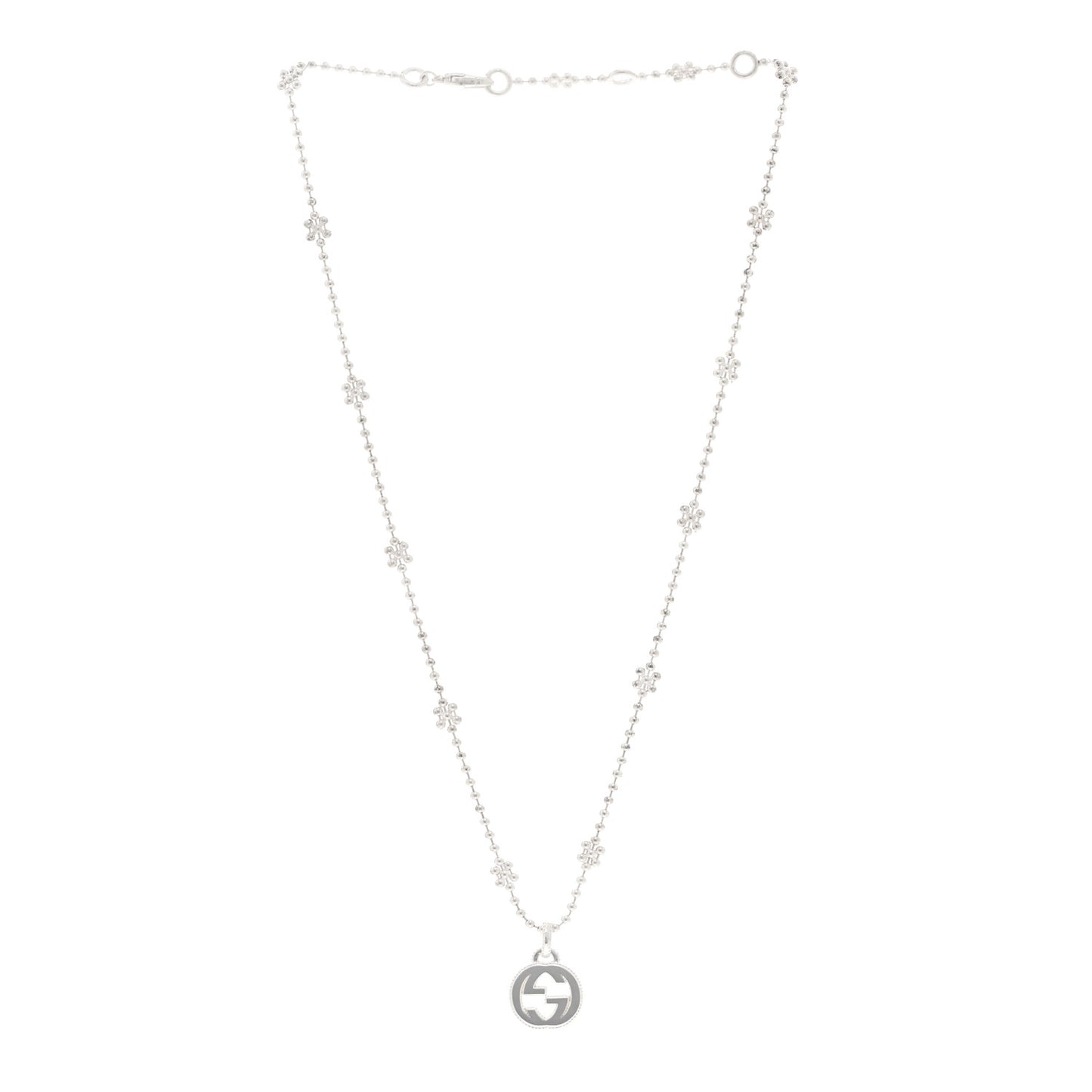 This an authentic GUCCI Sterling Silver Interlocking GG Pendant Beaded Necklace. The necklace is crafted of sterling silver and features an interlocking G pendant on a beaded chain.Follow this item for alerts. Gucci is a registered trademark of Gucci. FASHIONPHILE is not affiliated with Gucci.