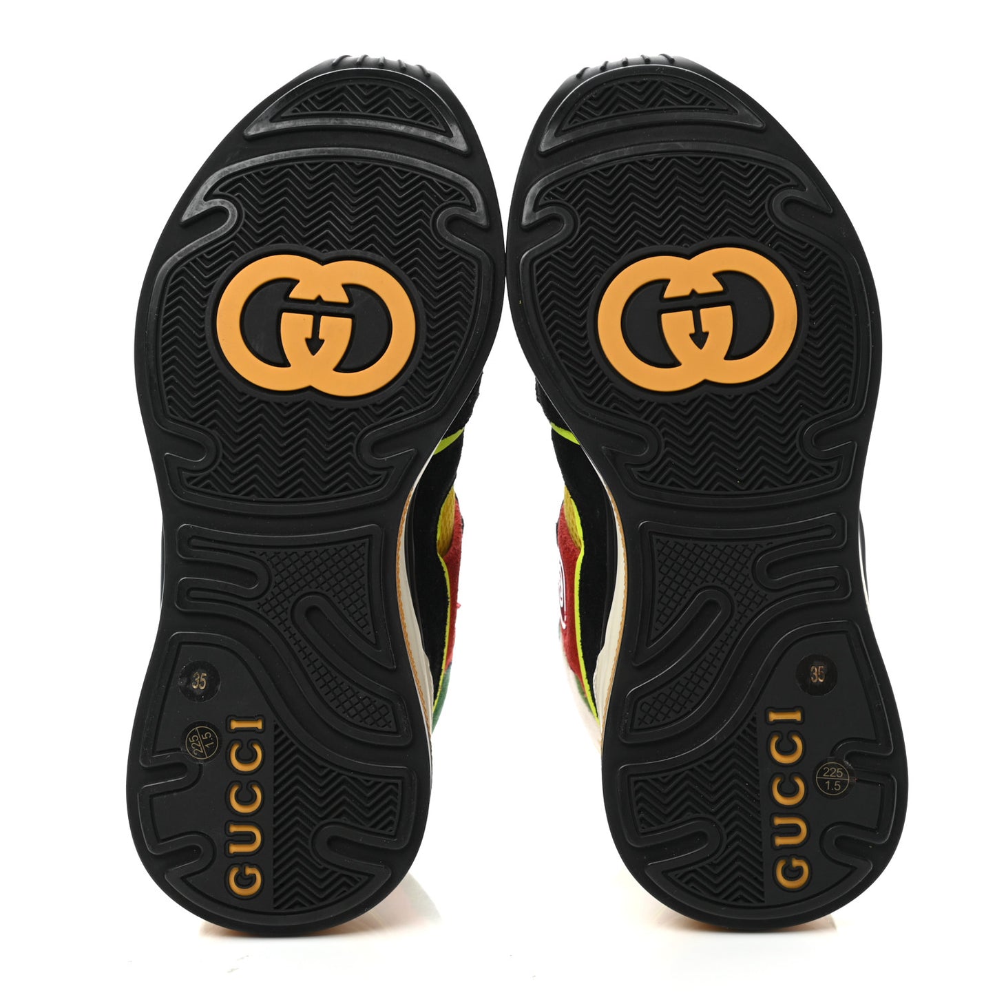 Gucci/ Accessories/ Shoes /Gucci Suede Calfskin Womens Ultrapace Mid Top Sneakers 35 Hibiscus Red Black Neon Yellow Yolk