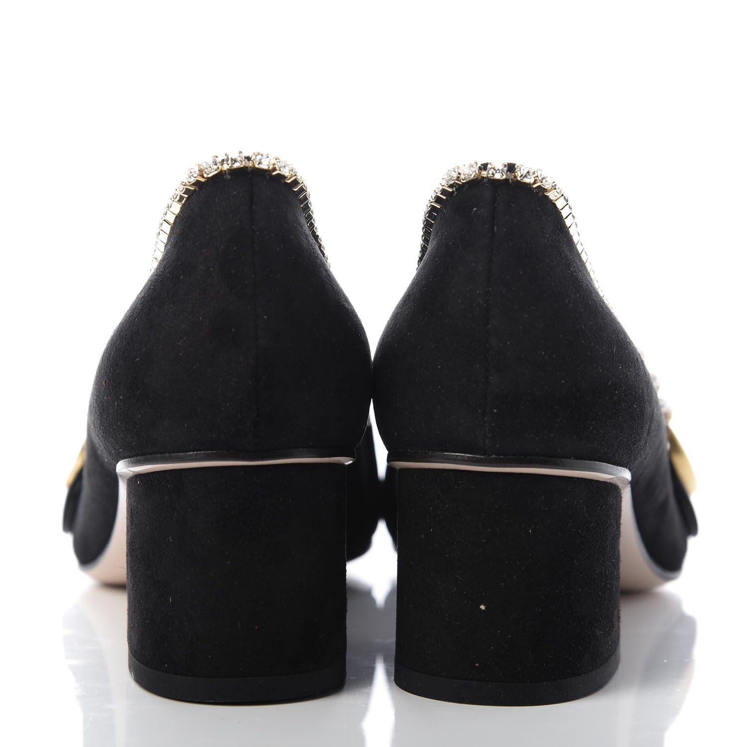 Kid Scamosciato Crystal GG Marmont Fringe 50mm Loafer Pumps 35.5 Black