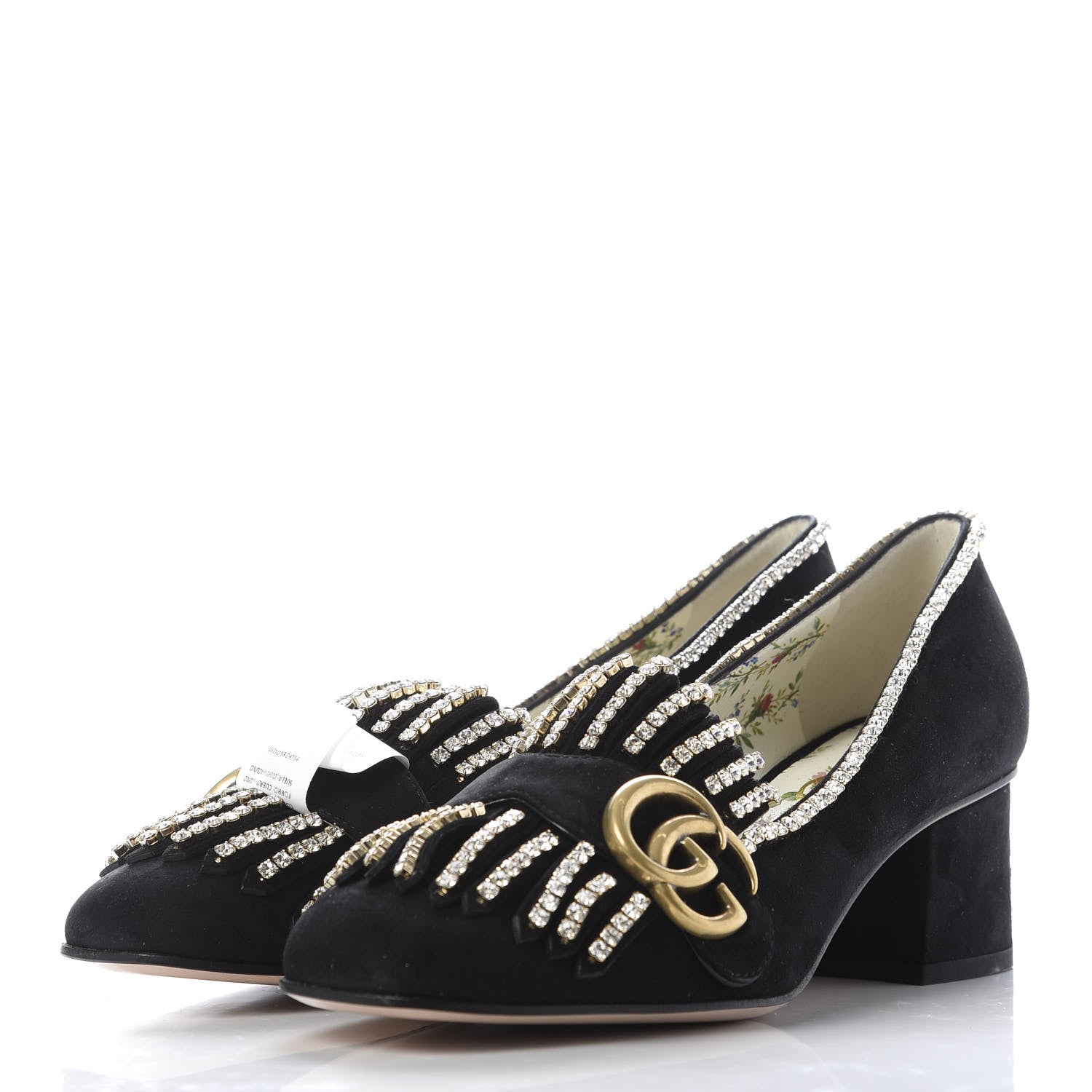Gucci/ Accessories/ Shoes /Gucci Kid Scamosciato Crystal GG Marmont Fringe 50mm Loafer Pumps 35.5 Black