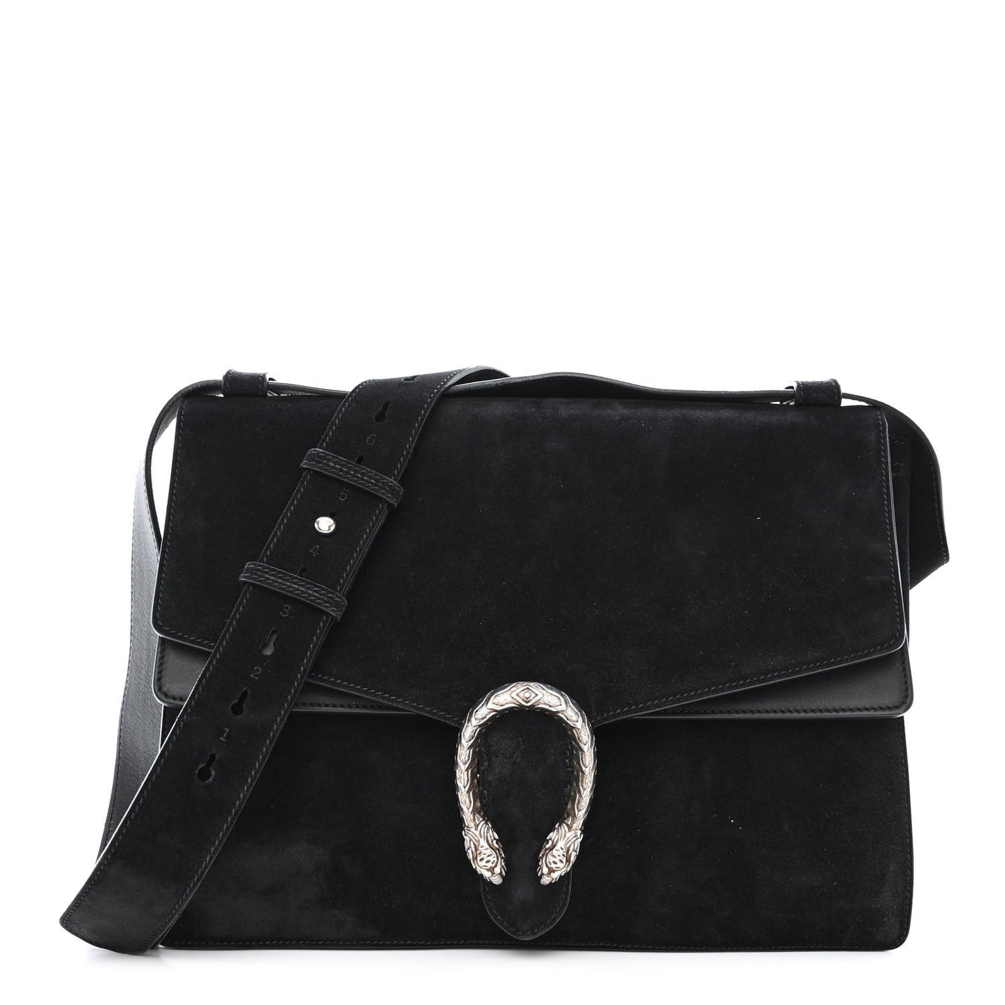 This is an authentic GUCCI Suede Medium Dionysus Messenger Bag in Black. This stylish bag is crafted of suede leather in black. This bag features a matching leather strap and a textured horseshoe closure with silver tiger head spurs. This opens to a matte leather interior with a zipper pocket.Follow this item for alerts. Gucci is a registered trademark of Gucci. FASHIONPHILE is not affiliated with Gucci.