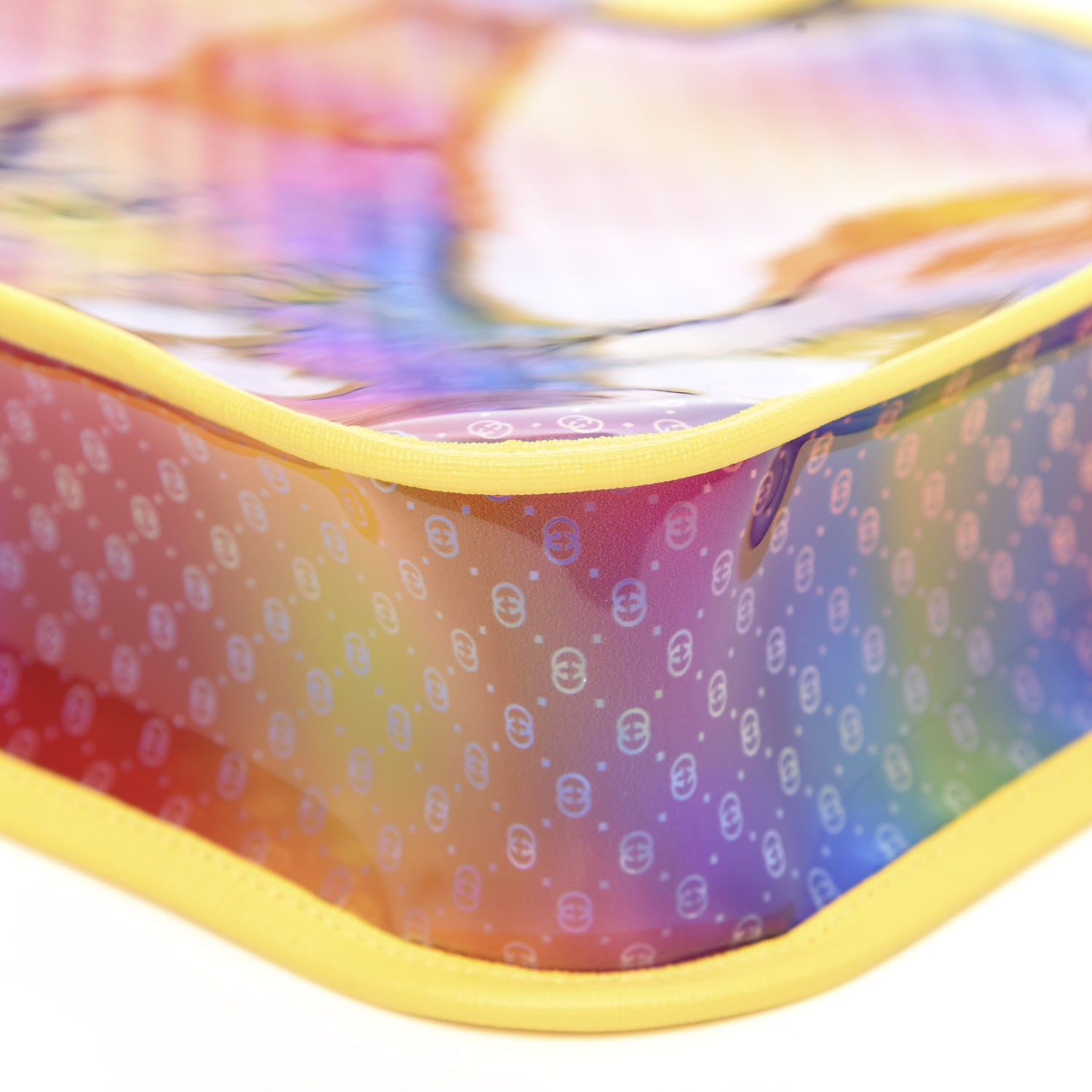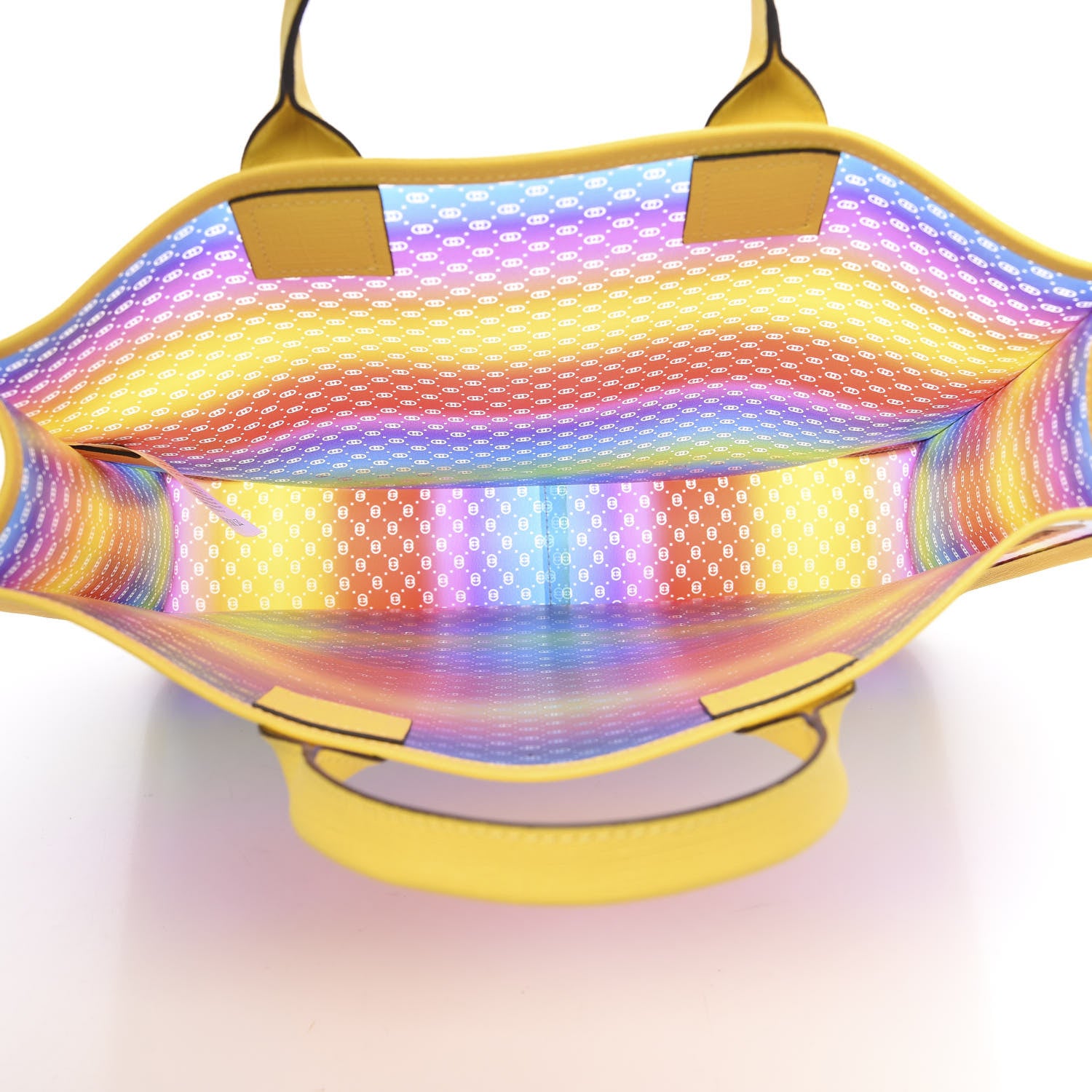 This is an authentic GUCCI Textured Vinyl Kids GG Tote in Multicolor. This chic tote is crafted of Gucci monogram vinyl in multicolor. The bag features yellow leather top handles and trim. The top is open to a colorful vinyl interior with room for daytime essentials, with the sophisticated style of Gucci!Follow this item for alerts. Gucci is a registered trademark of Gucci. FASHIONPHILE is not affiliated with Gucci.