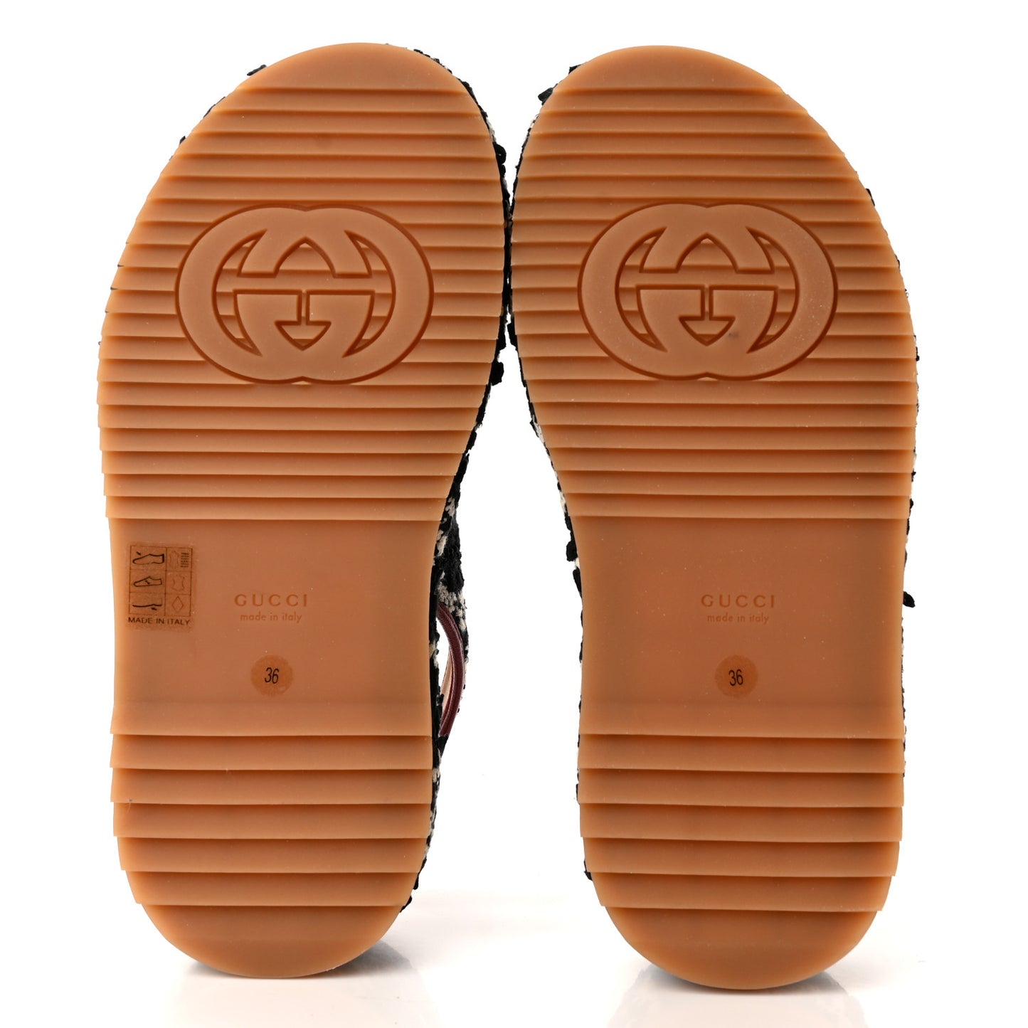 Gucci/ Accessories/ Shoes /Gucci Tweed GG Monogram Crystal Angelina Platform Slingback Sandals 36 Black Natural Cerise
