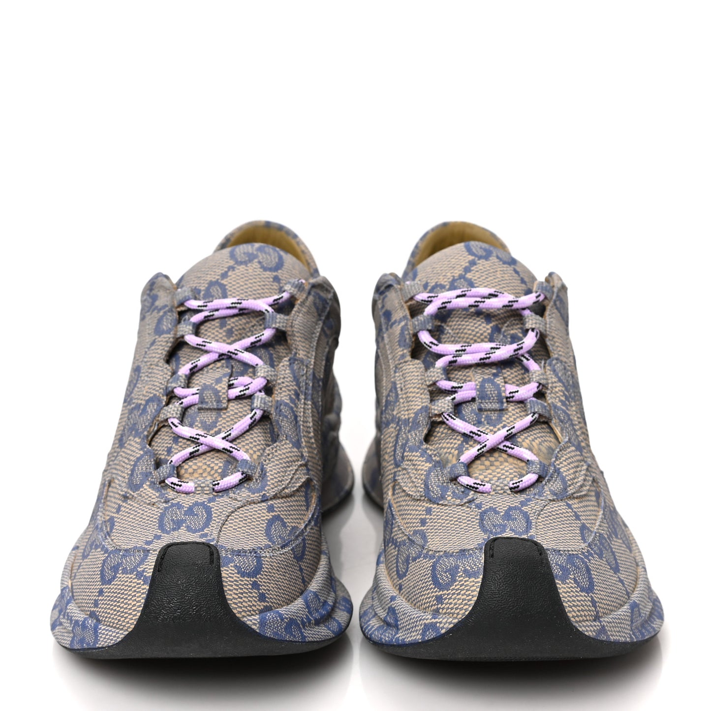 This is an authentic pair of GUCCI Ultralight Plume Calfskin Monogram Printed Mens Gucci Run Sneakers size 38.5 in Beige and Blue. These stylish sneakers are crafted of Gucci GG monogram leather with rubber soles.Follow this item for alerts. Gucci is a registered trademark of Gucci. FASHIONPHILE is not affiliated with Gucci.