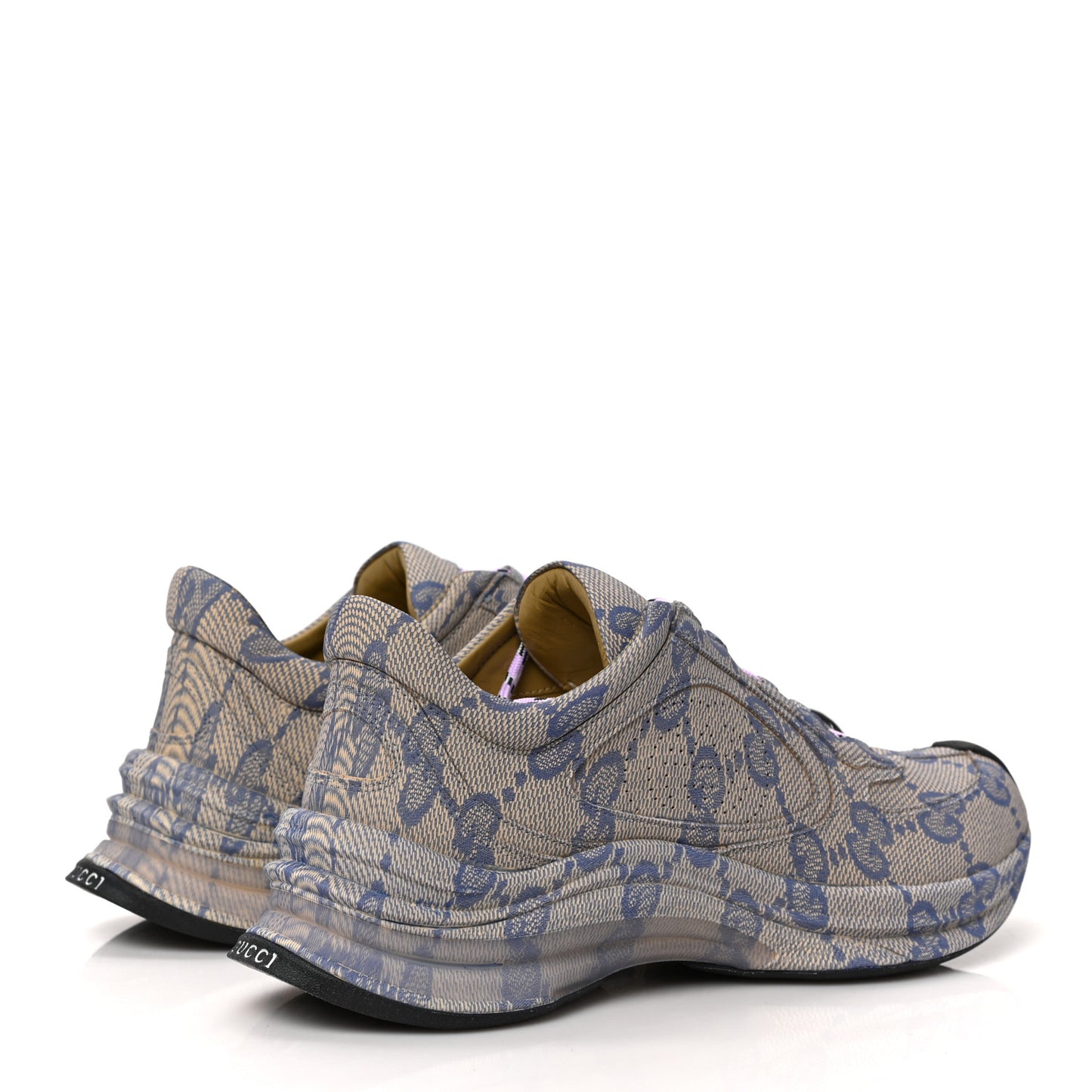 Ultralight Plume Calfskin Monogram Printed Mens Gucci Run Sneakers 38.5 Beige Blue