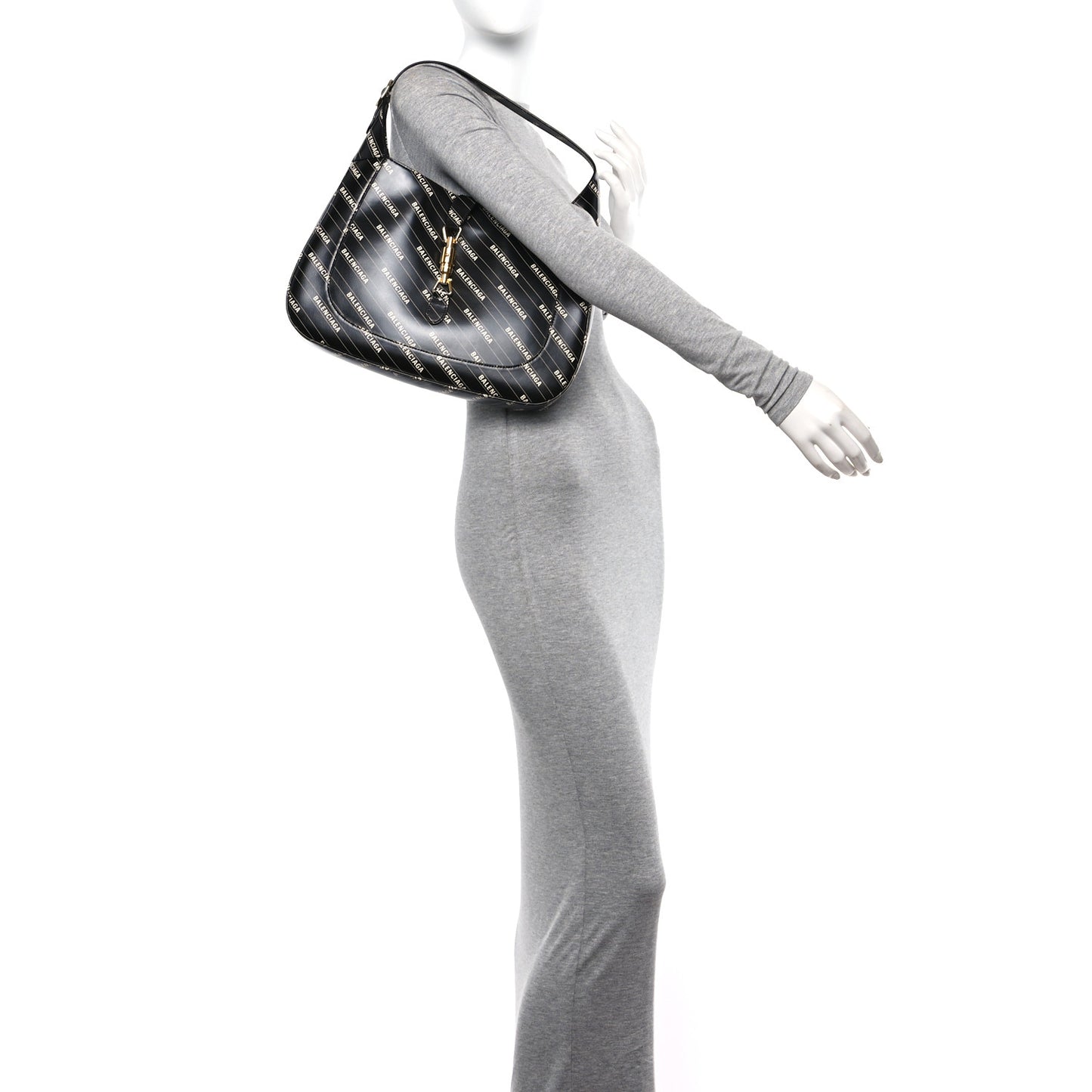 X BALENCIAGA Calfskin Logo Print Medium Jackie 1961 Hobo Black
