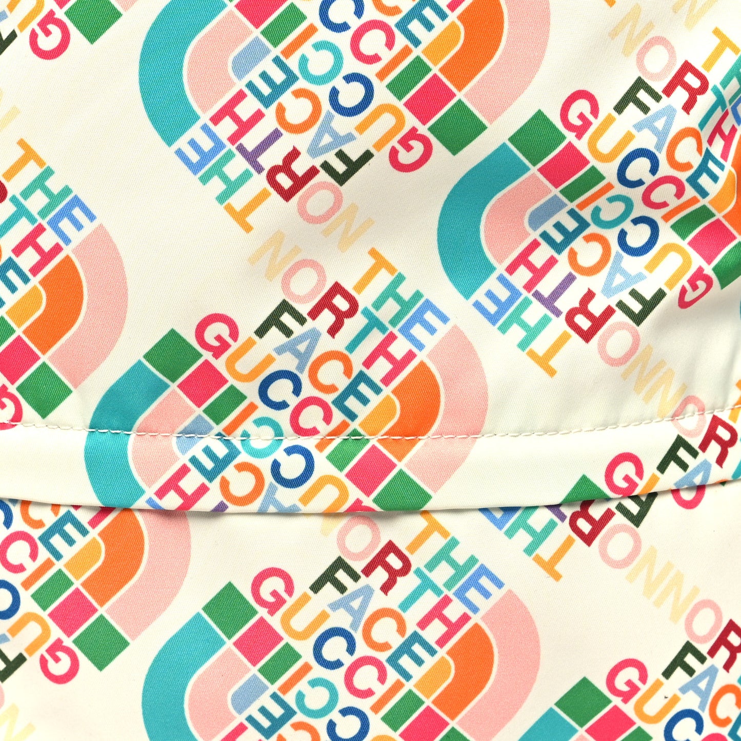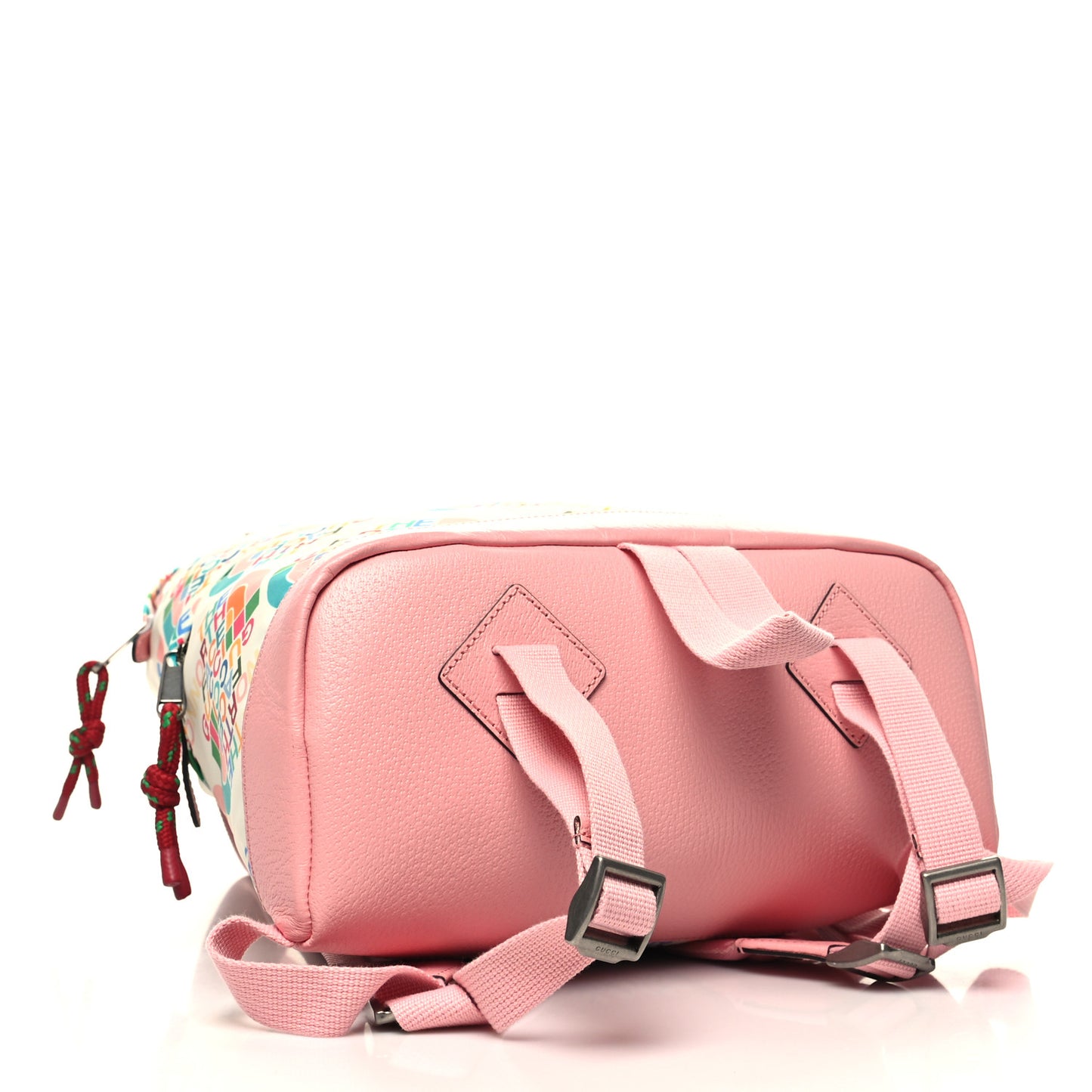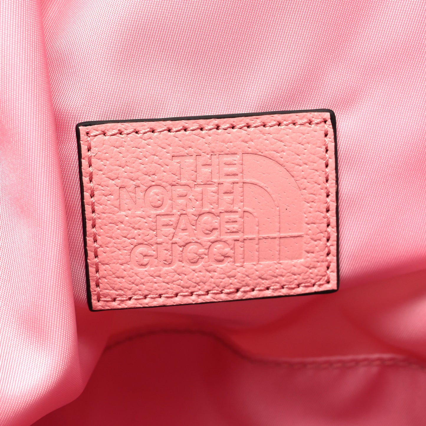 This is an authentic GUCCI X THE NORTH FACE Econyl Nylon Medium Backpack Ivory Turquoise Wild Rose. This sustainable backpack style part of the Gucci x North Face collection and is crafted of recycled Econyl nylon in pink and white. The bag features a front zipper pocket, pink leather trim, a canvas top handle, and adjustable pink nylon shoulder straps with aged silver hardware. The wrap-around zippers open to a spacious pink nylon interior with a pocket.Follow this item for alerts. Gucci is a registered trademark of Gucci. FASHIONPHILE is not affiliated with Gucci.
