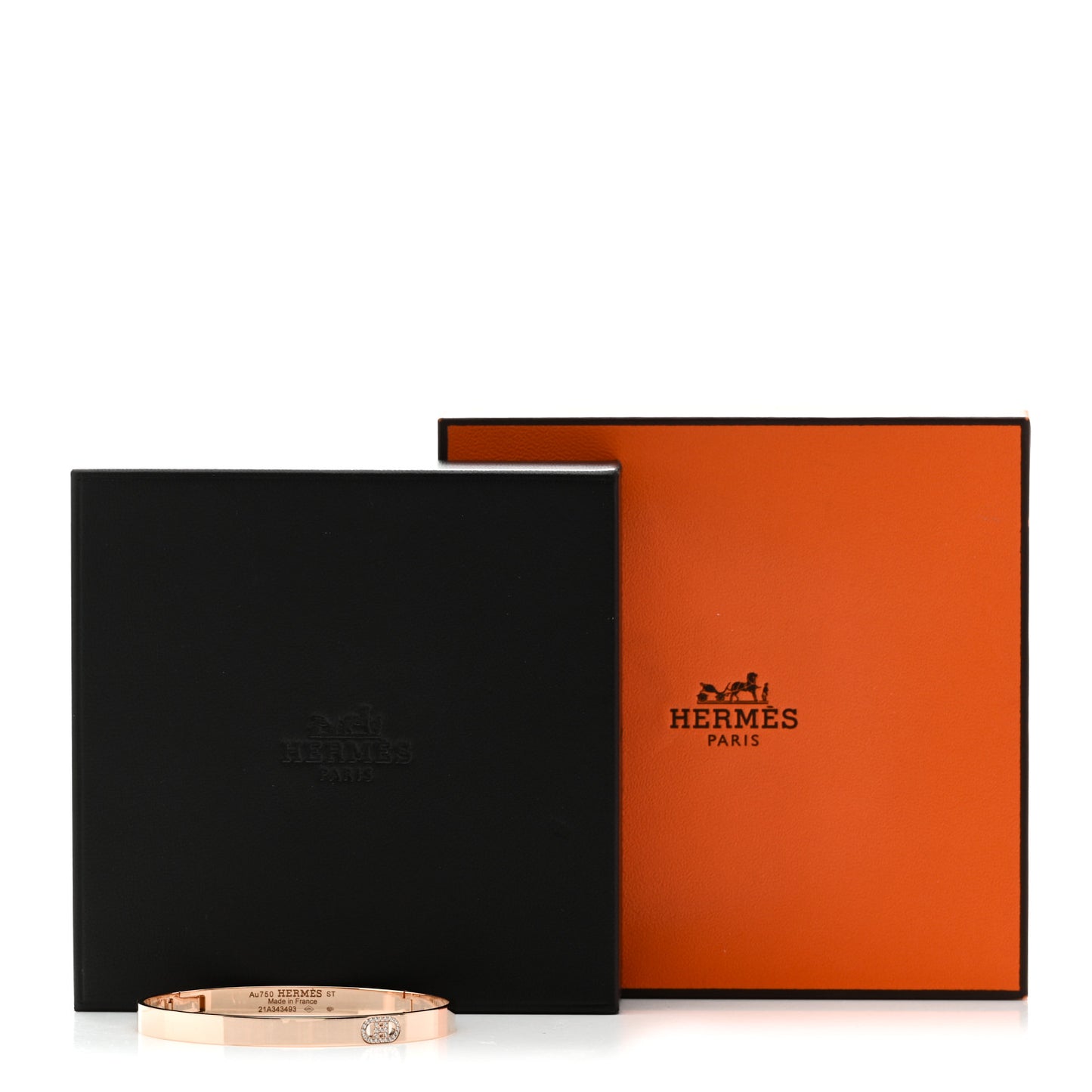 This is an authentic HERMES 18K Rose Gold Diamond PM H D'Ancre Bracelet ST. The bracelet is crafted of 18 karat rose gold and features a pave diamond set Hermes H oval logo weighing approximately .07 total carat weight.Follow this item for alerts. Hermes is a registered trademark of Hermes. FASHIONPHILE is not affiliated with Hermes.