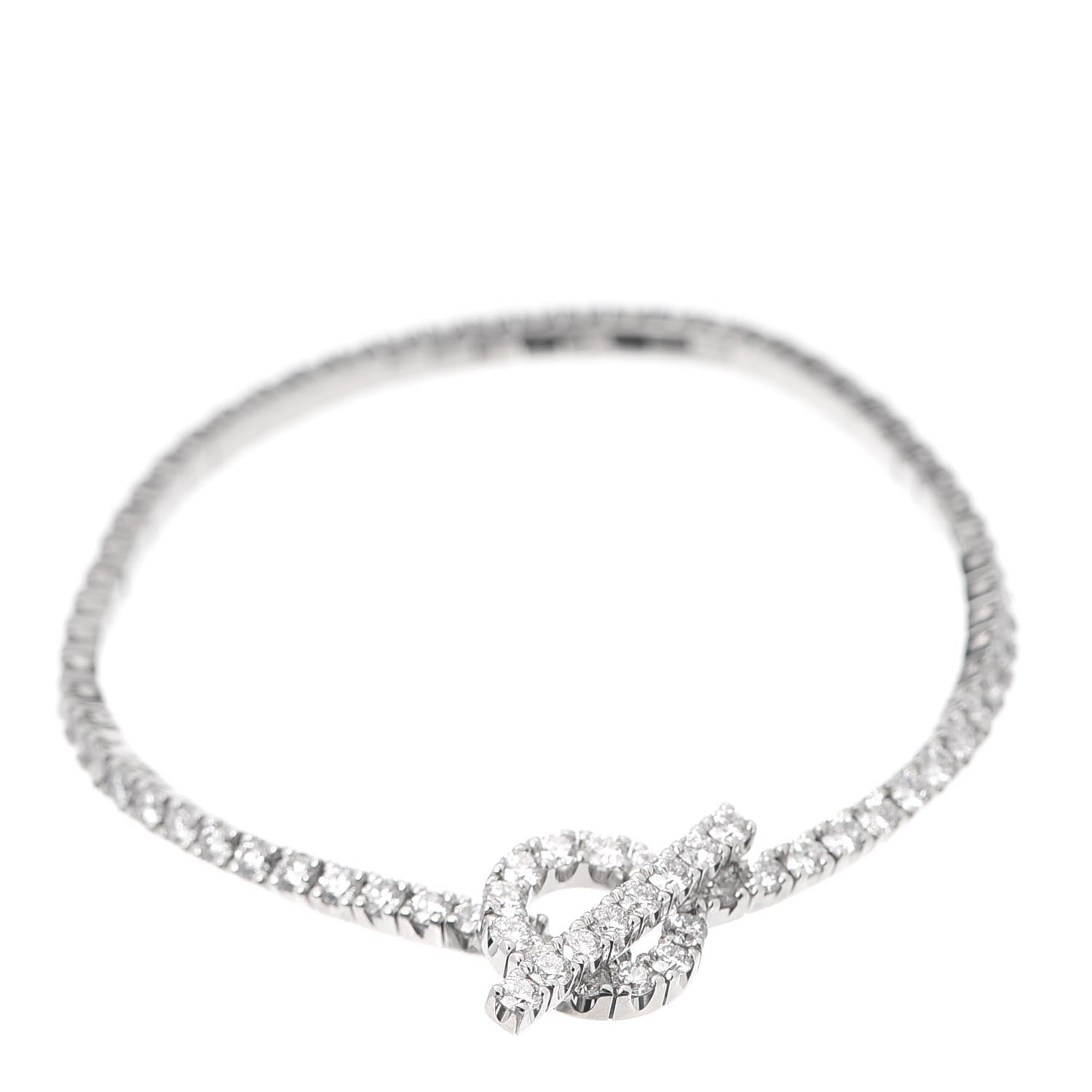 This is an authentic HERMES 18K White Gold Diamond Finesse Link Bracelet XS. The bracelet is crafted of 18 karat white gold and features a band of round brilliant cut diamonds and a diamond toggle clasp, approximately 2.49 total carat weight.Follow this item for alerts. Hermes is a registered trademark of Hermes. FASHIONPHILE is not affiliated with Hermes.