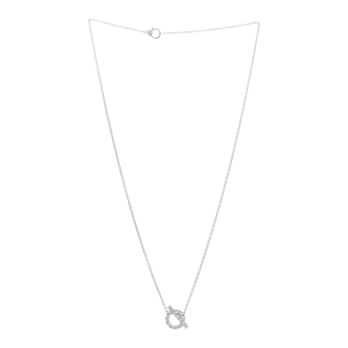 This is an authentic HERMES 18K White Gold Diamond Finesse Pendant Necklace. The necklace is crafted of 18 karat white gold and features a bar and ring motif pendant set with round brilliant cut diamonds weighing approximately .46 total carat weight.Follow this item for alerts. Hermes is a registered trademark of Hermes. FASHIONPHILE is not affiliated with Hermes.