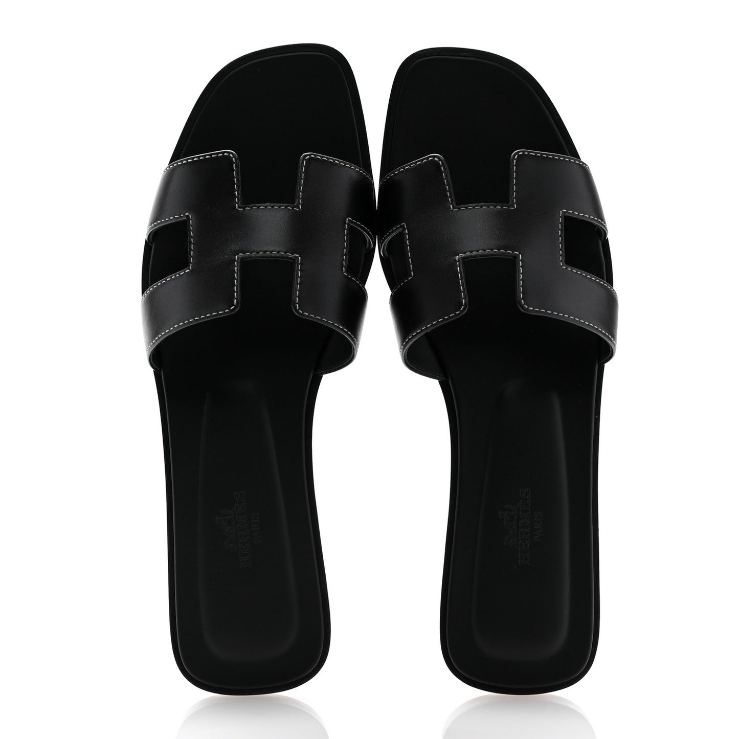 Hermes/ Accessories/ Shoes /Hermes Box Calfskin Oran Sandals 39 Black