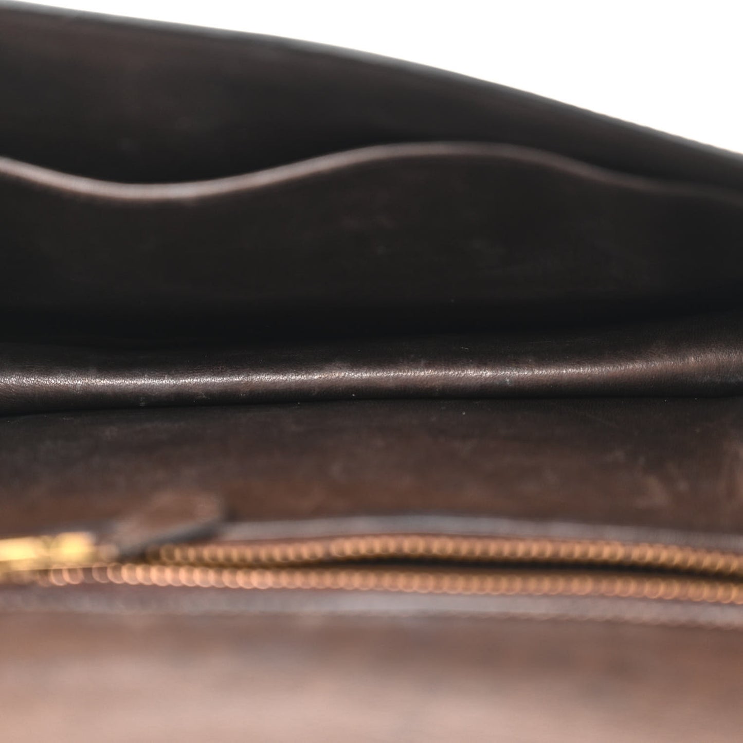 Item shows some wear and signs of previous use, but still has a lot of life in it. Slightly worn corners, creases in leather, and tarnished hardware may be visible. Any notable flaws or signs of wear are stated in the listing.