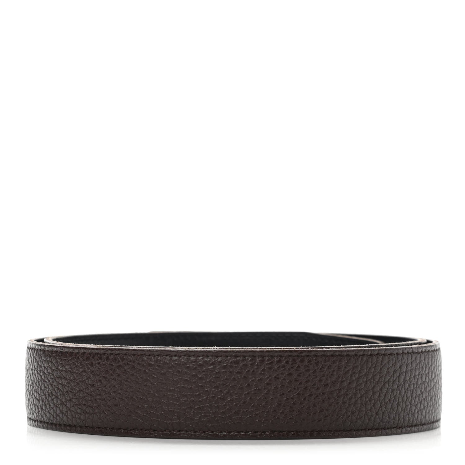 This is an authentic HERMES Box Togo 32mm Belt Strap size 85 in Black and Chocolate. This stylish belt is crafted of box leather in black on one side and togo leather in dark brown on the other.Follow this item for alerts. Hermes is a registered trademark of Hermes. FASHIONPHILE is not affiliated with Hermes.