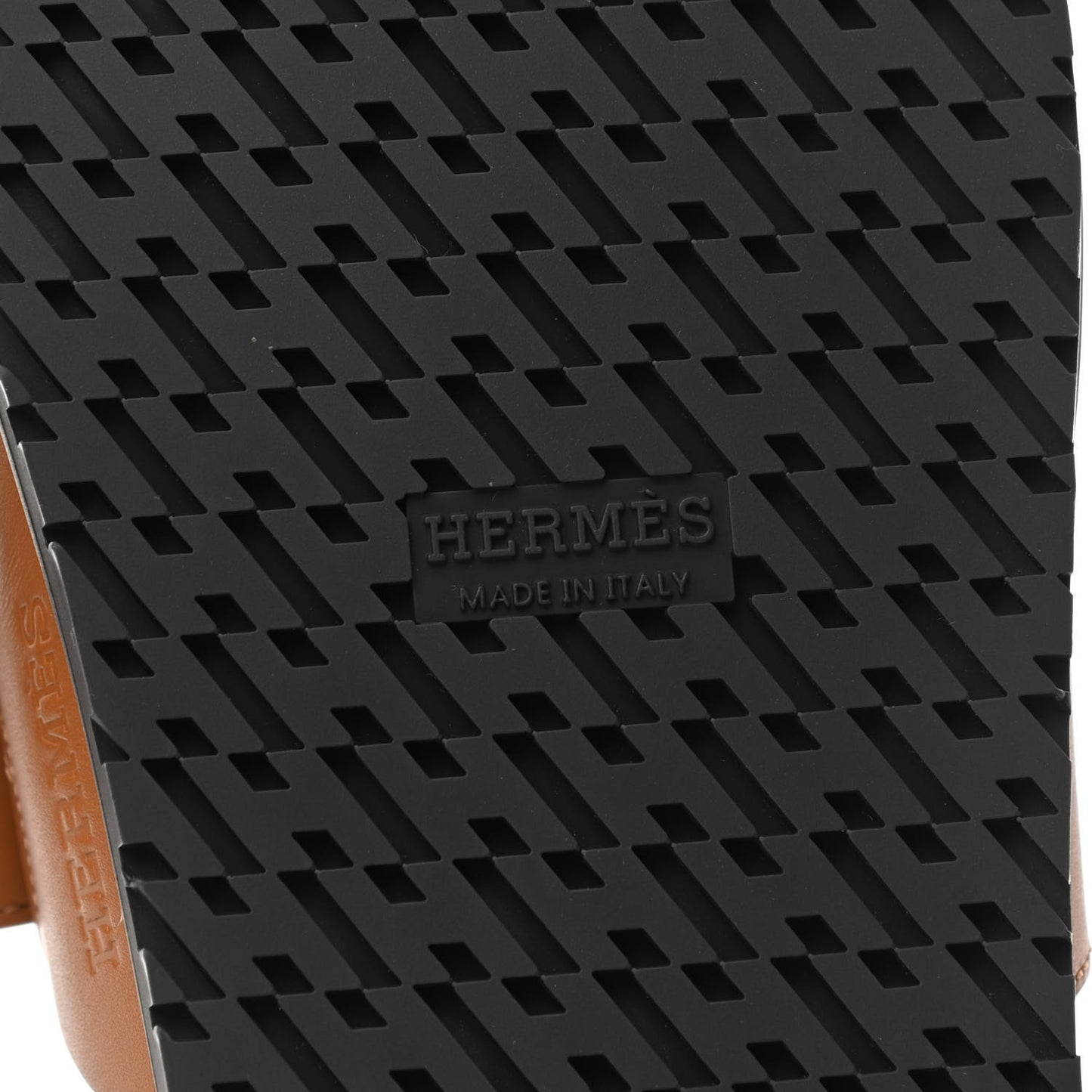 This is an authentic pair of HERMES Calfskin Womens Chypre Sandals in size 35 in Gold. These slippers feature calfskin leather in brown. The toe strap is a cross-over large Hermes H.Follow this item for alerts. Hermes is a registered trademark of Hermes. FASHIONPHILE is not affiliated with Hermes.