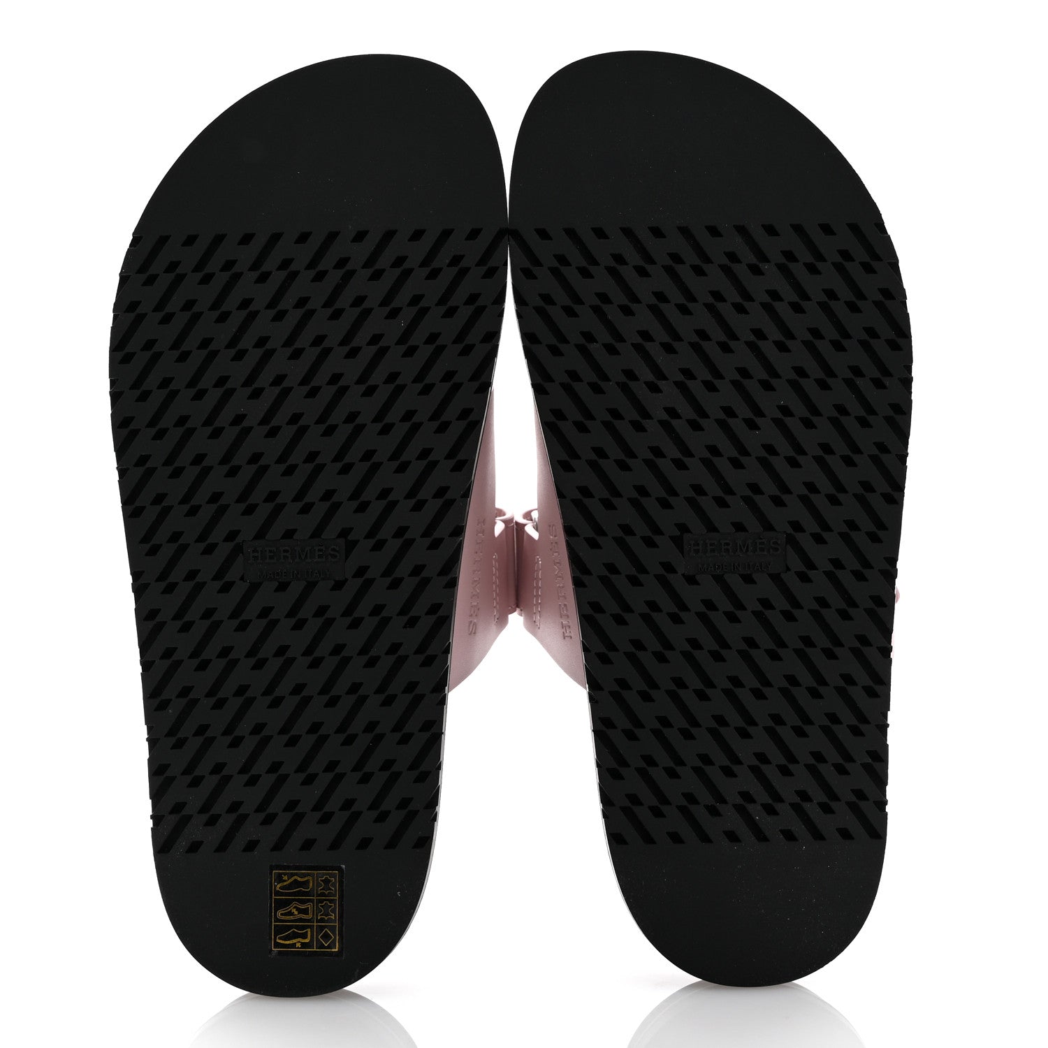 Hermes/ Accessories/ Shoes /Hermes Calfskin Womens Chypre Sandals 37.5 Rose Cancan