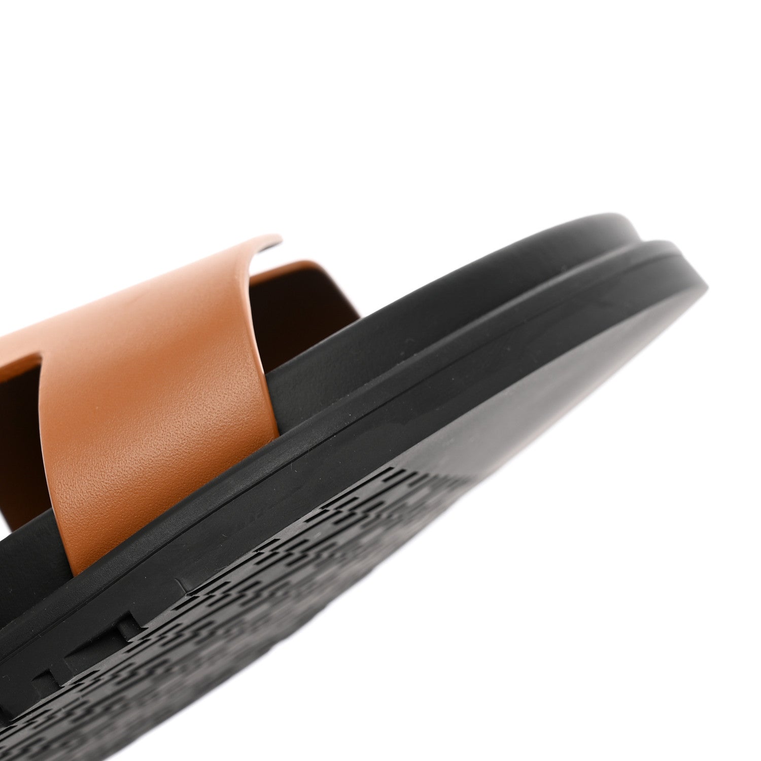 This is an authentic pair of HERMES Calfskin Mens Chypre Sandals size 44 in Gold. These stylish sandals are crafted of leather in golden brown with a black insole. They feature a toe strap across-over large Hermes H and an adjustable strap.Follow this item for alerts. Hermes is a registered trademark of Hermes. FASHIONPHILE is not affiliated with Hermes.