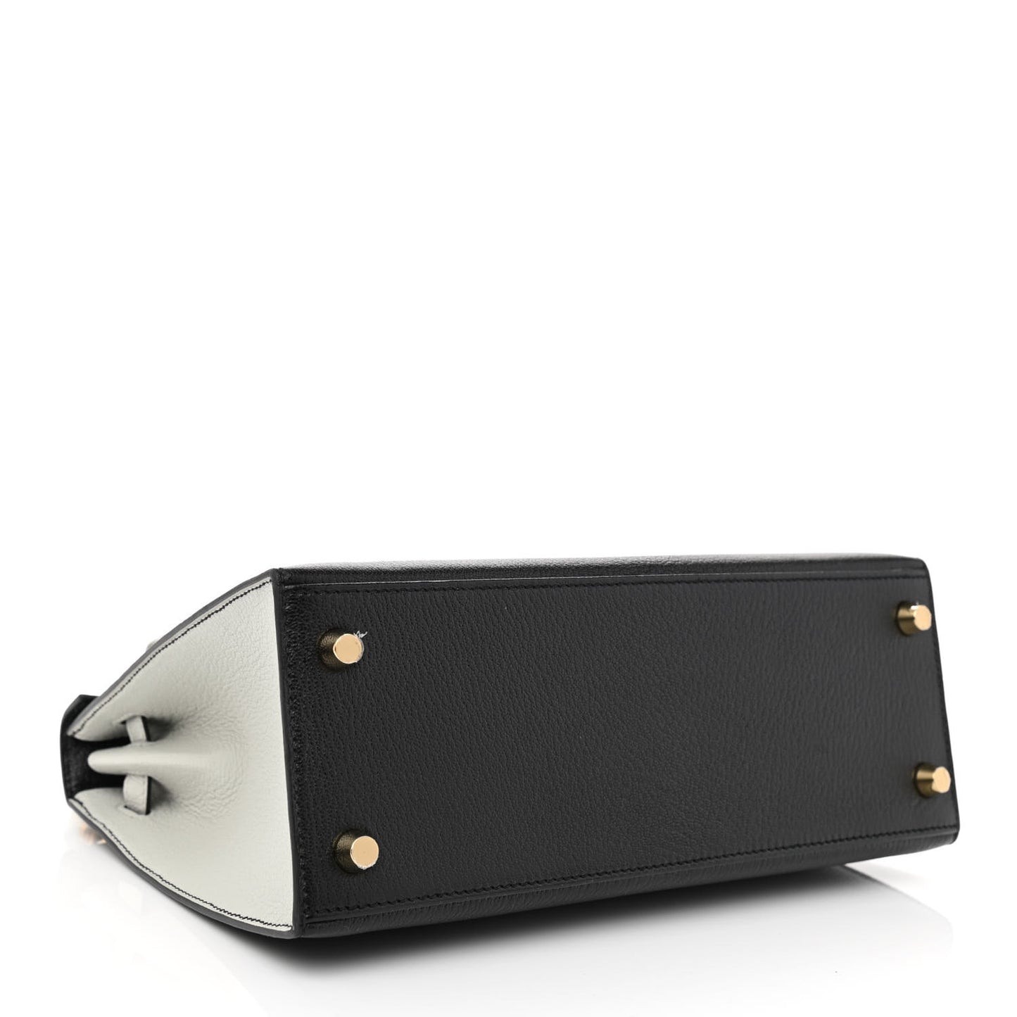 Hermes/ Bags/ Shoulder Bags /Hermes Chevre Mysore Bi-Color Horseshoe Kelly Sellier 25 Black Gris Mouette