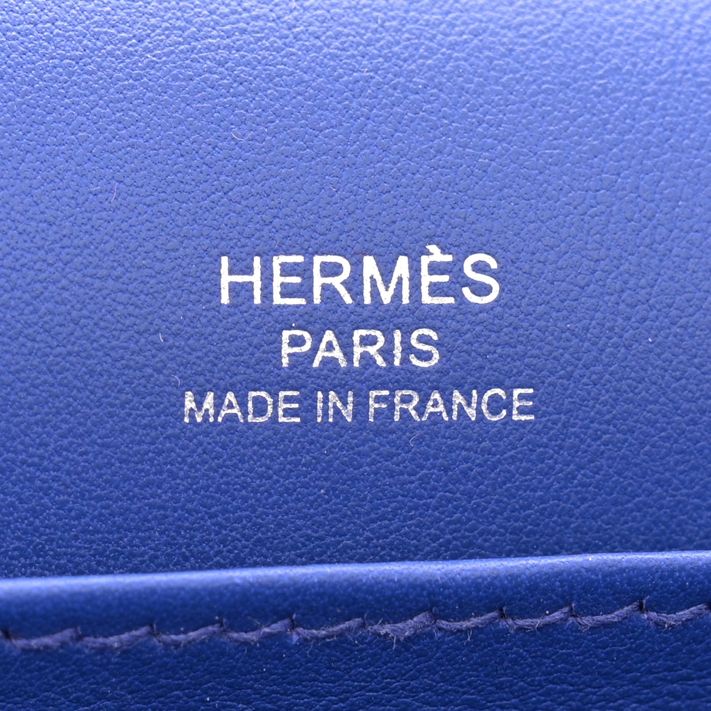 This is an authentic HERMES Chevre Mysore Geta in Bleu Electrique. This is a small messenger-style bag that is finely crafted of luxurious goatskin leather in blue. This rectangular bag fastens with a palladium magnetic closure and has an adjustable canvas strap. The clasp forms a pedestal that replaces the base studs. The flap opens to a matching leather interior with pockets.Follow this item for alerts. Hermes is a registered trademark of Hermes. FASHIONPHILE is not affiliated with Hermes.