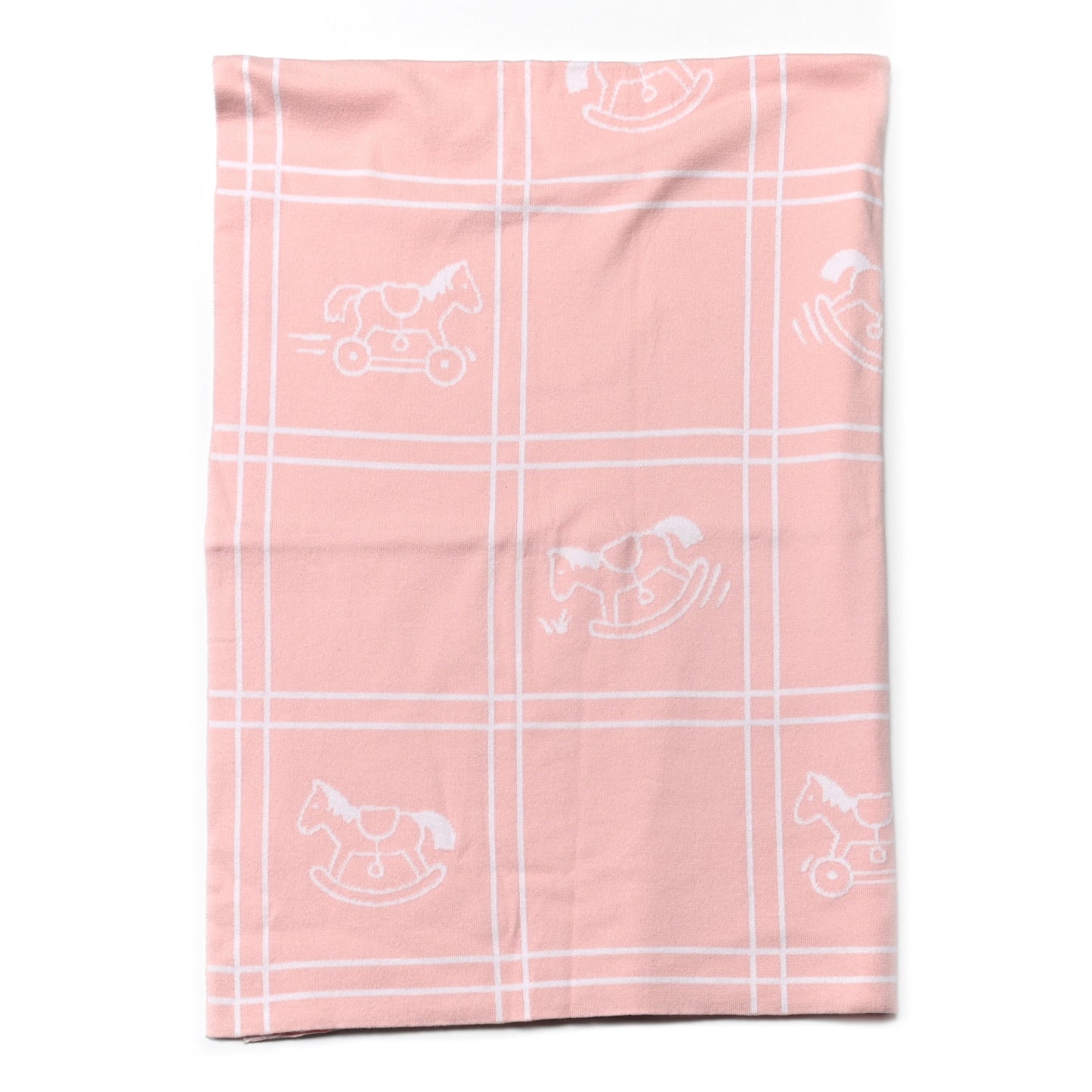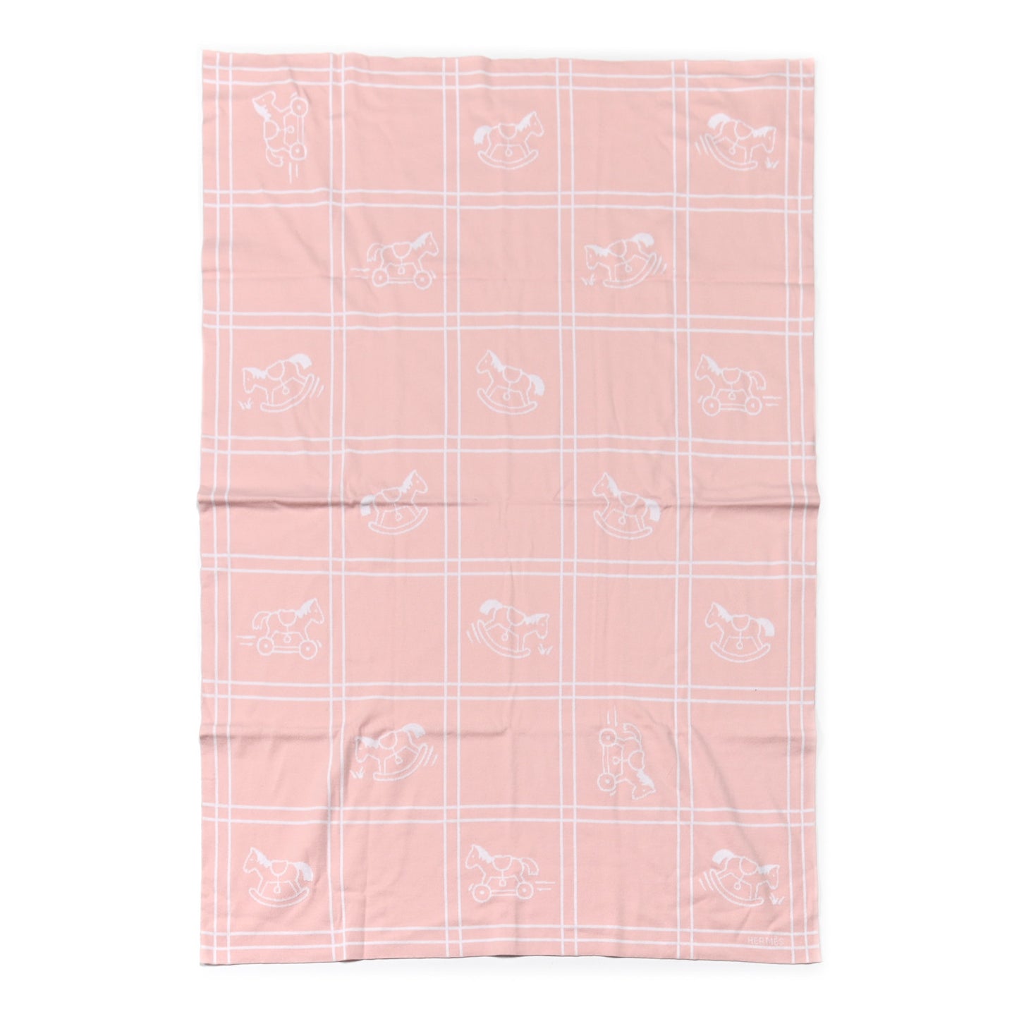 This is an authentic HERMES Cotton Knit Adada Knit Baby Blanket in Rose Lilas. This stylish blanket is 100% cotton and features light pink rocking horses on a pink background.Follow this item for alerts. Hermes is a registered trademark of Hermes. FASHIONPHILE is not affiliated with Hermes.