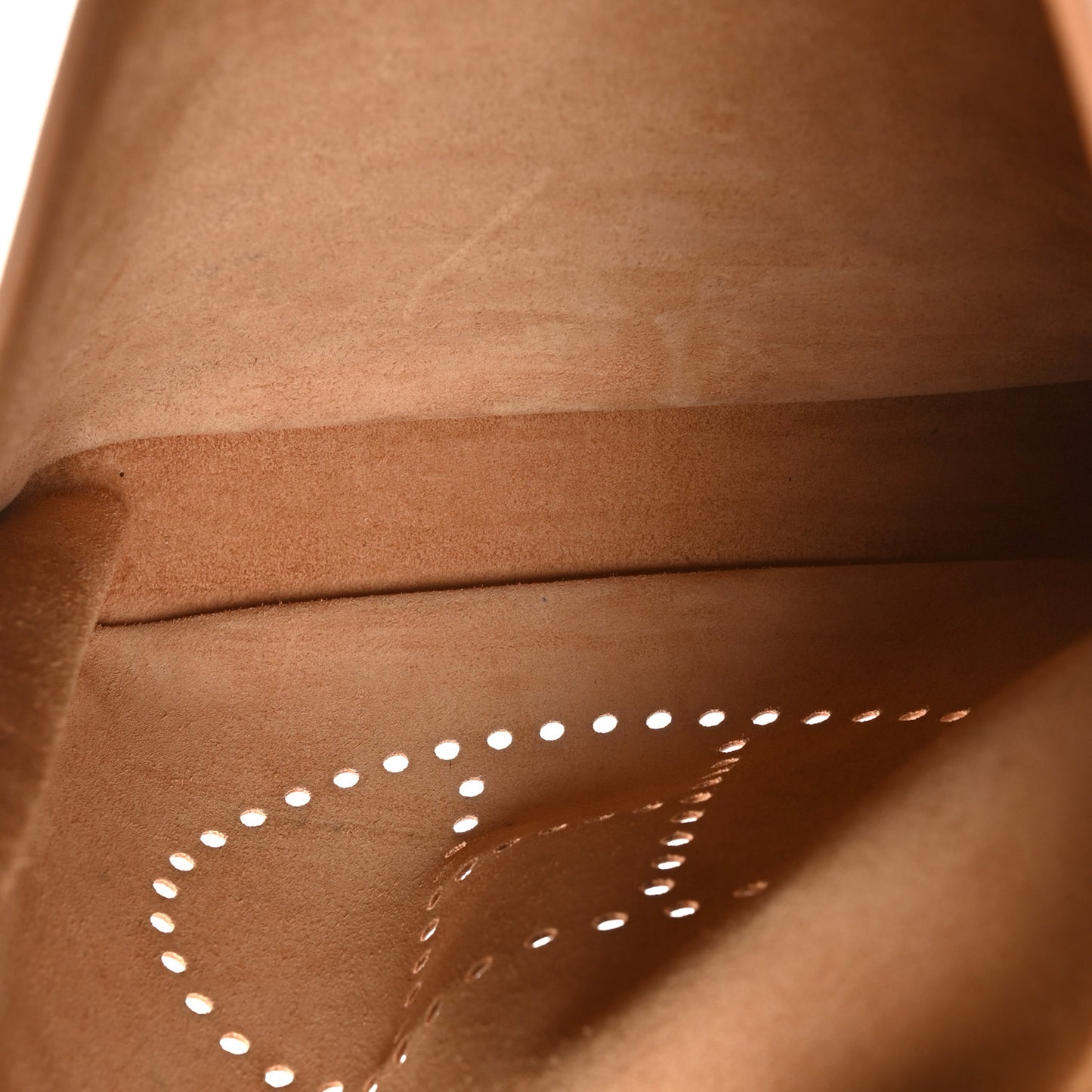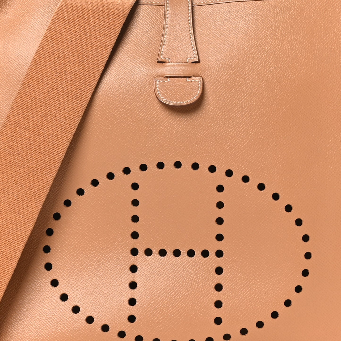 This is an authentic HERMES Courchevel Evelyne GM in Tabac Camel. This stylish messenger bag is finely crafted of stamped courchevel calfskin leather in light brown. The bag features a fabric shoulder strap, gold hardware, and a perforated Hermes H inside an oval on the front of the bag. The top of the bag opens with a cross over strap to a spacious matching suede interior.Follow this item for alerts. Hermes is a registered trademark of Hermes. FASHIONPHILE is not affiliated with Hermes.
