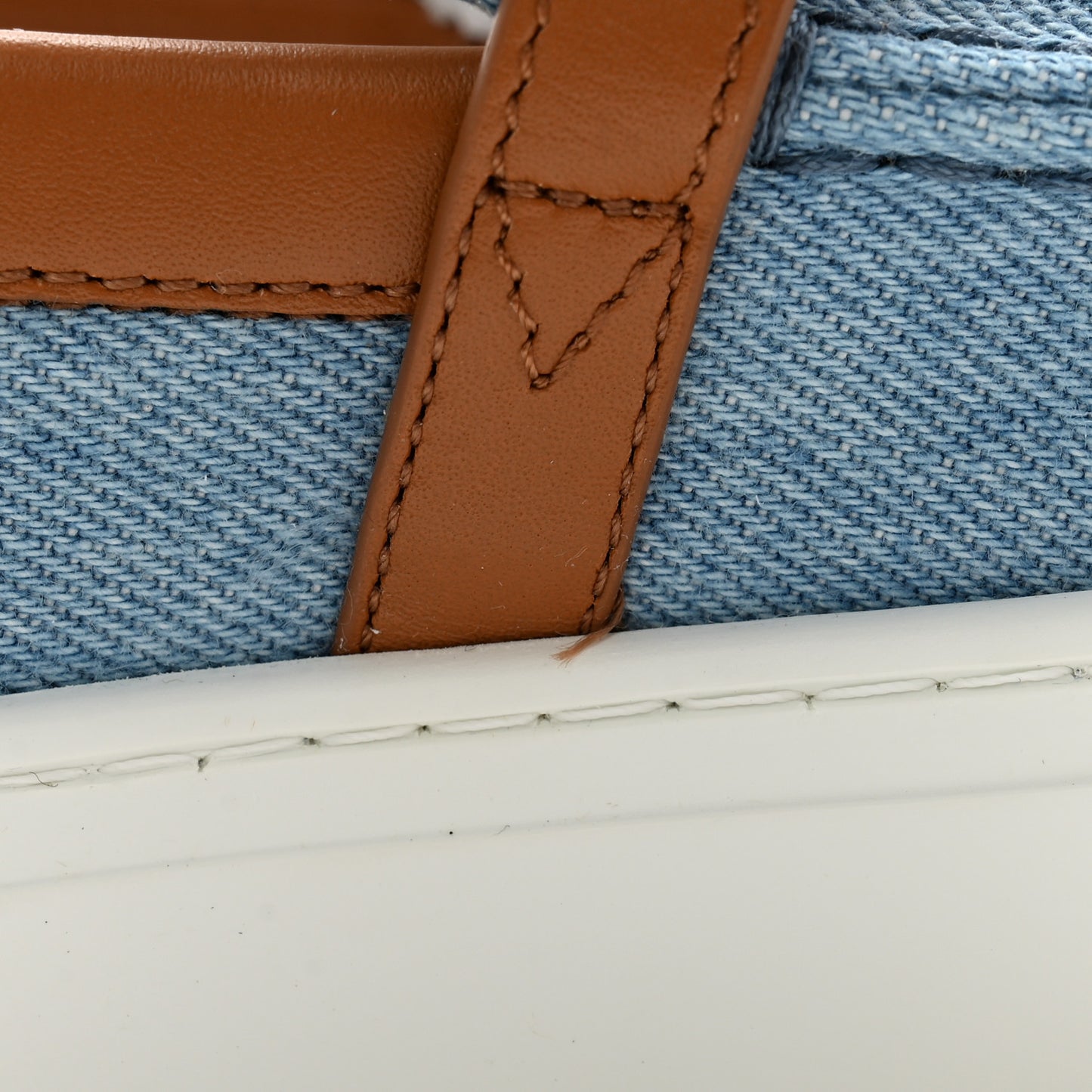 Denim Calfskin Womens Game Slip On Sneakers 39 Bleu Clair Gold