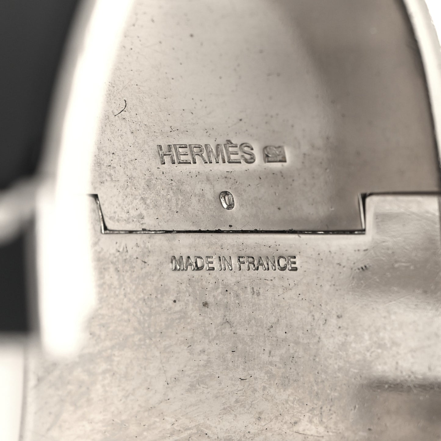 This is an authentic HERMES Enamel Extra Wide Clic Clac H Bracelet PM in Black. This is a chic bracelet from Hermes that is a wide polished silver plated band with a hinge on one side and opens with a swivel Hermes "H" on the prominent side.Follow this item for alerts. Hermes is a registered trademark of Hermes. FASHIONPHILE is not affiliated with Hermes.