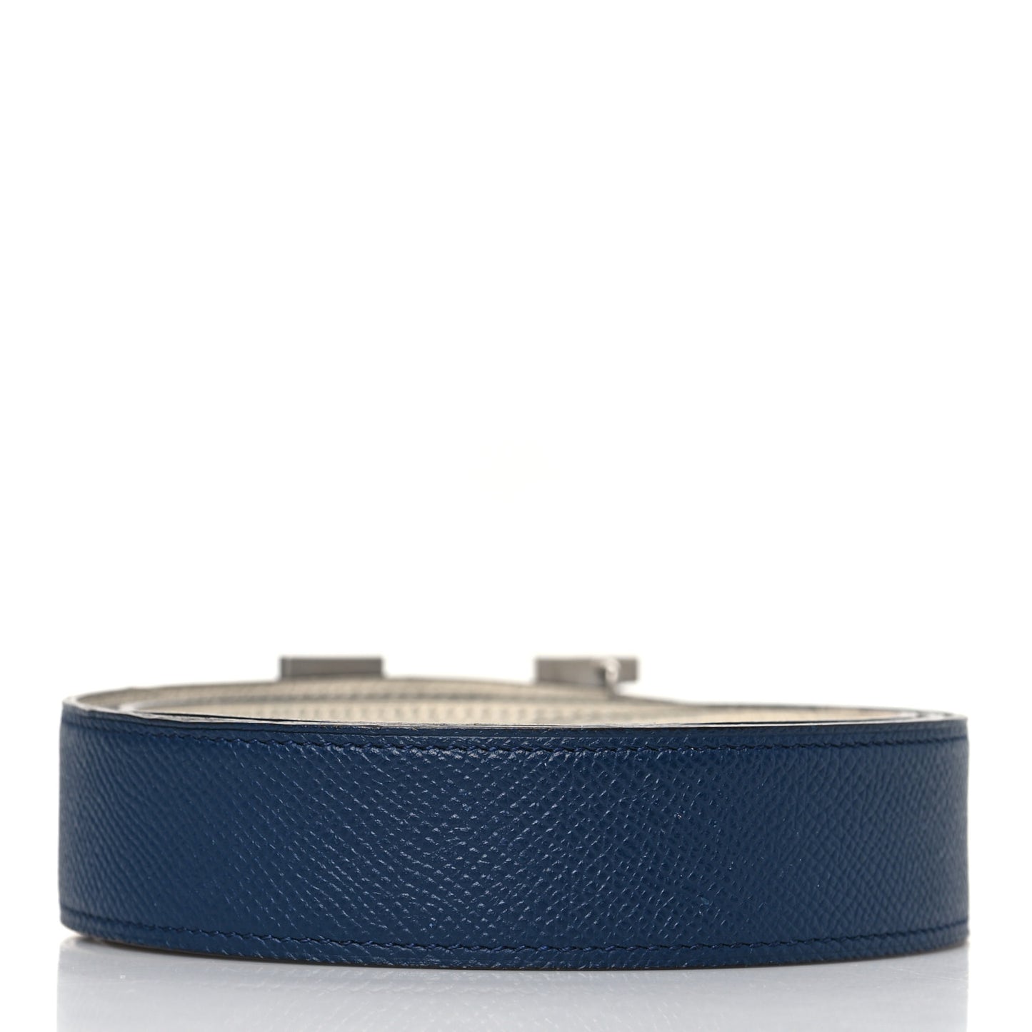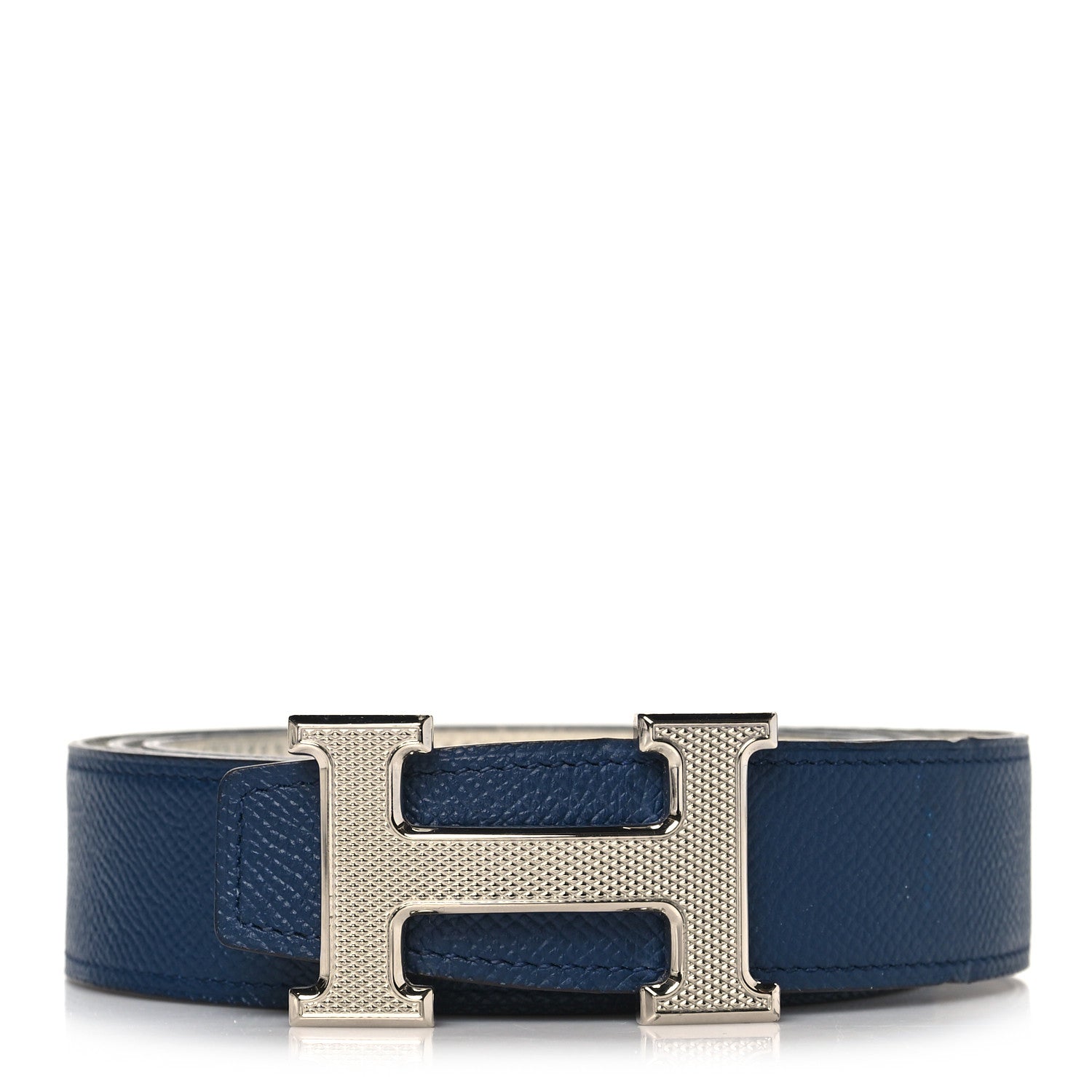 Hermes/ Accessories/ Belts /Hermes Epsom 32mm Guilloche H Belt 100 Bleu Indigo White