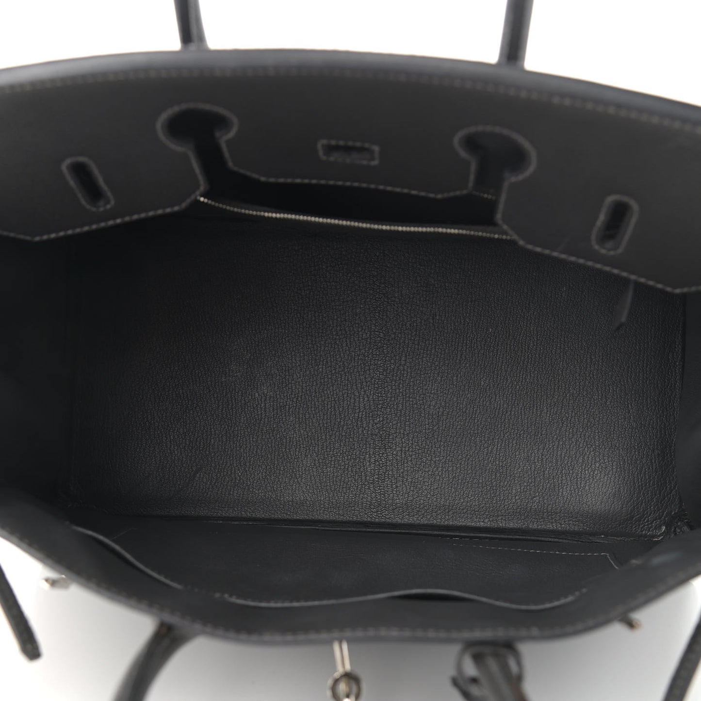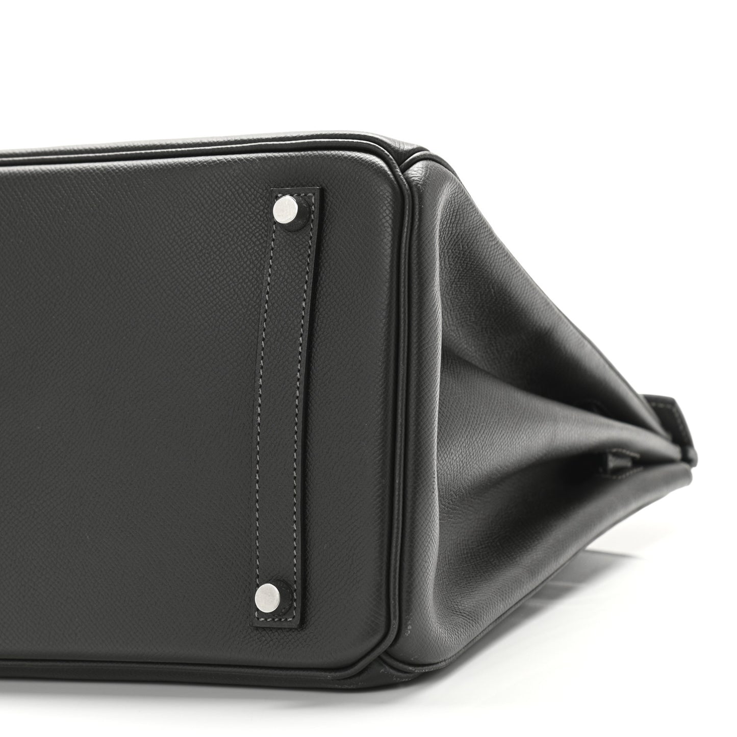 This is an authentic HERMES Epsom Birkin 35 in Ardoise. This stylish tote is beautifully crafted of epsom calfskin leather in dark grey. The bag features rolled leather top handles, a front flap and strap closure, and palladium silver plated hardware including a palladium turn lock, padlock and clochette for keys. This opens to a matching chevre goatskin leather interior with zipper and patch pockets.Follow this item for alerts. Hermes is a registered trademark of Hermes. FASHIONPHILE is not affiliated with Hermes.