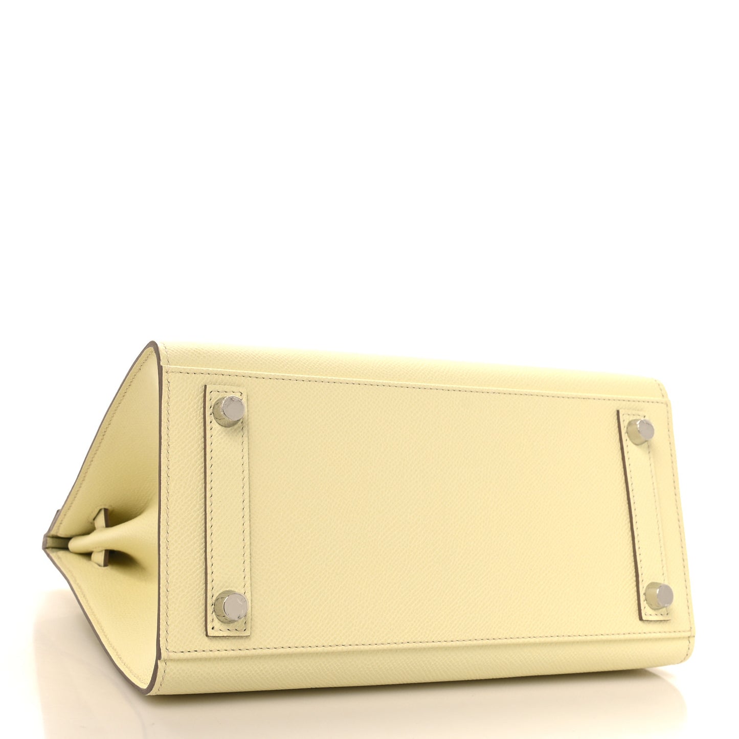 This is an authentic HERMES Epsom Birkin Sellier 25 in Jaune Milton. This rare Sellier model is expertly constructed of epsom calfskin leather in light yellow. This bag features rolled leather top handles, a front flap, strap closure and silver plated hardware including a turn lock, padlock and 2 keys inside a clochette. This flap to a matching chevre goatskin leather interior with zipper and patch pockets.Follow this item for alerts. Hermes is a registered trademark of Hermes. FASHIONPHILE is not affiliated with Hermes.