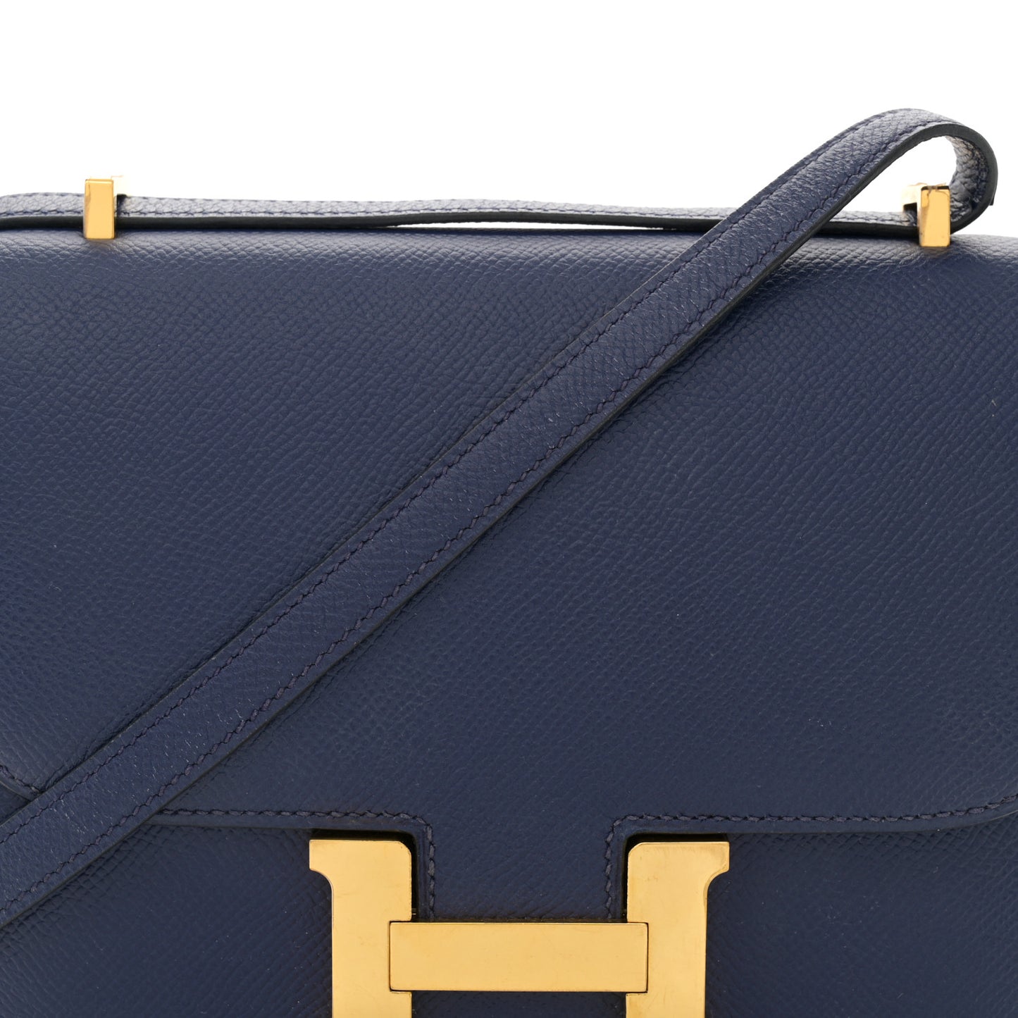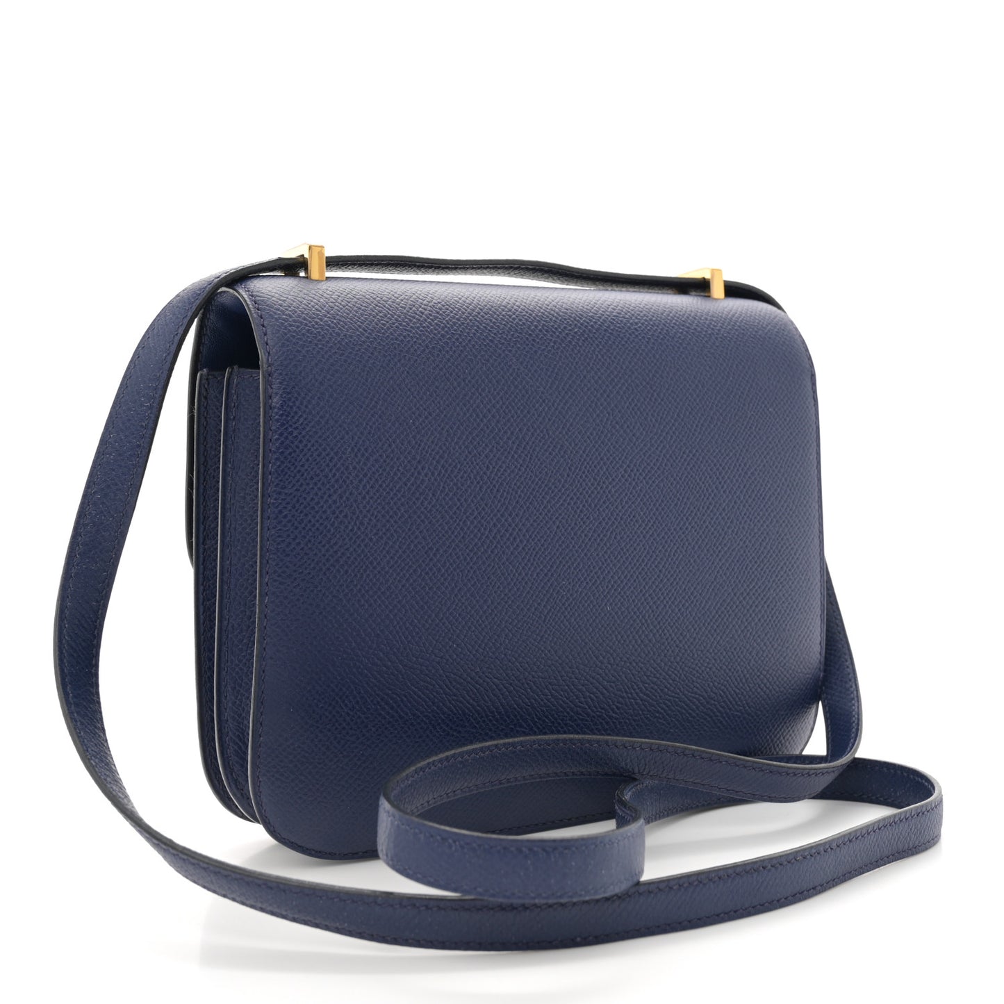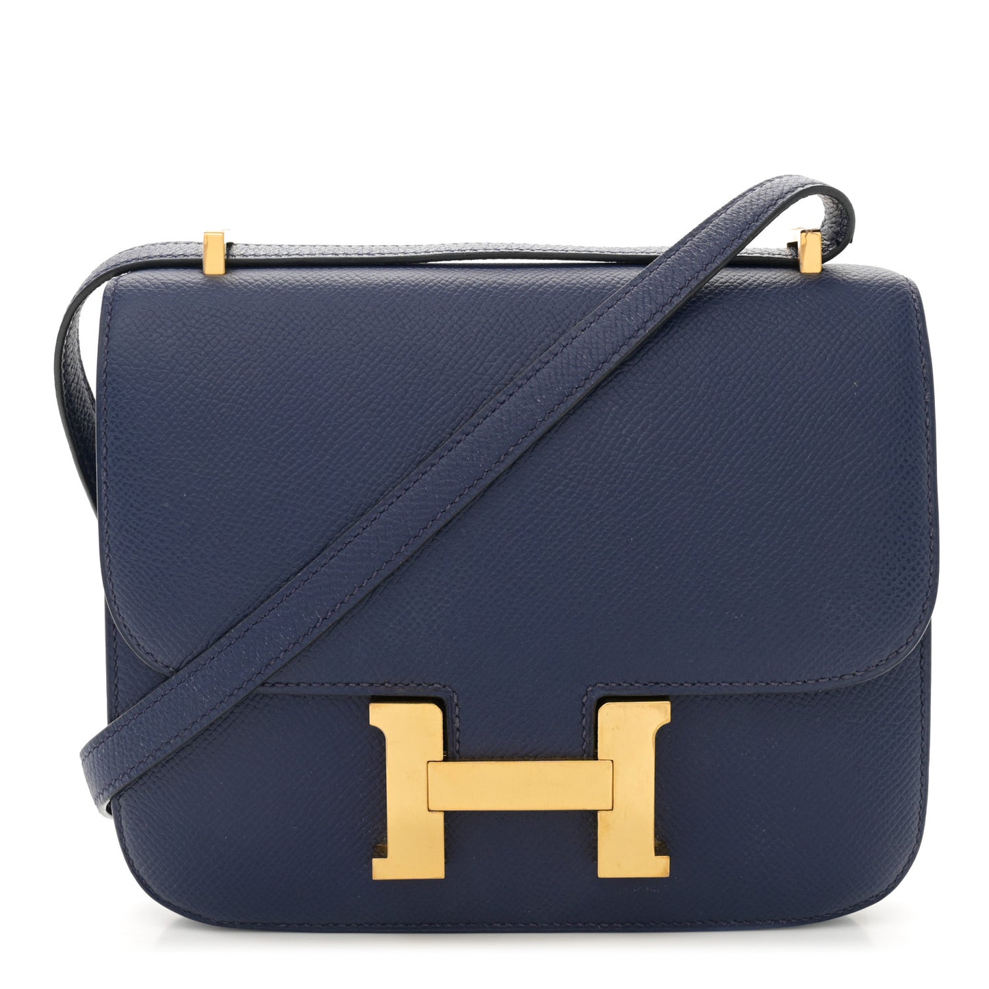 This is an authentic HERMES Epsom Constance 18 in Bleu Saphir. This is a chic small bag that is finely crafted of luxurious epsom calfskin leather in dark blue. The bag features a leather cross body shoulder strap, expandable sides, a facing flap with a polished gold Hermes H logo. The flap opens to a blue swift partitioned leather interior.Follow this item for alerts. Hermes is a registered trademark of Hermes. FASHIONPHILE is not affiliated with Hermes.