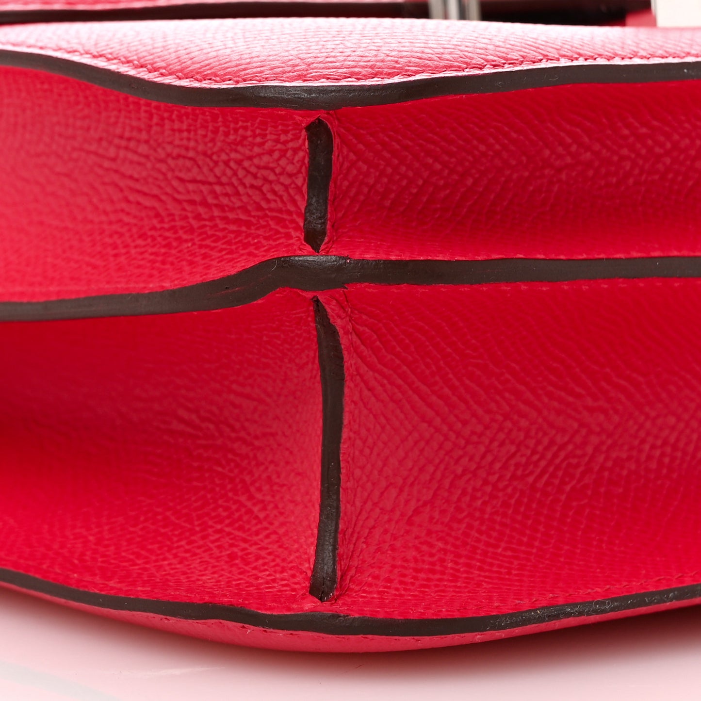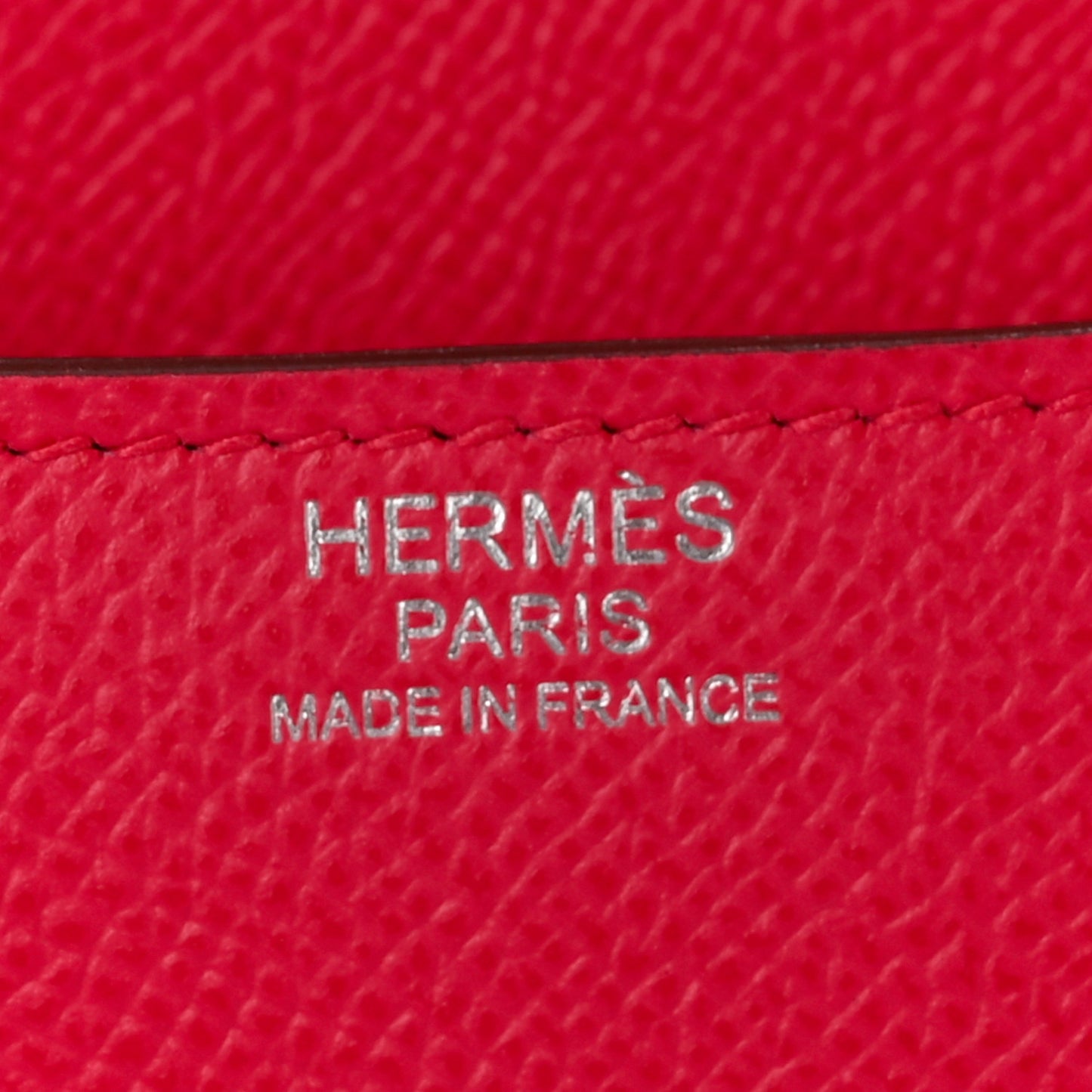This is an authentic HERMES Epsom Constance 24 in Rose Extreme. This stylish shoulder bag is finely crafted of epsom calfskin leather in bright pink. The bag features a crossbody strap with polished silver-plated hardware, including an H buckle on the front flap. The flap opens to a pink compact partitioned leather interior with zipper and patch pockets.