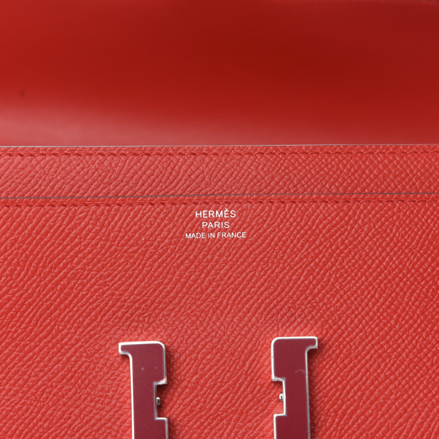 This is an authentic HERMES Epsom Enamel Constance Wallet To Go in Rouge de Coeur Rubis. This chic wallet is crafted of fine Epsom calfskin leather in a stunning red shade. The wallet features a front flap, strap, and an enamel red H press-lock. This opens to a partitioned leather interior with card slots, patch pockets, a detachable strap, and a zipper pocket.Follow this item for alerts. Hermes is a registered trademark of Hermes. FASHIONPHILE is not affiliated with Hermes.