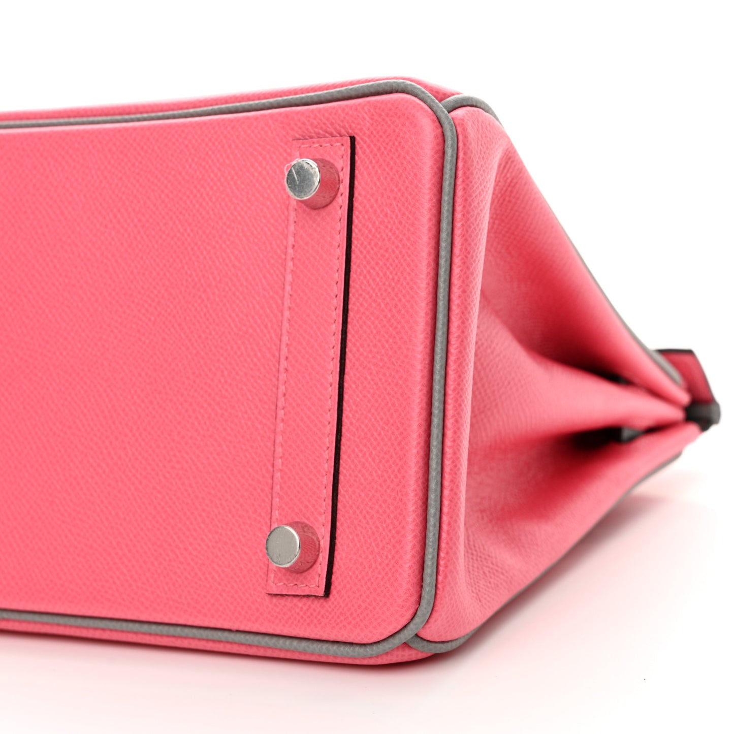 Epsom Horseshoe Birkin 25 Rose Azalee Gris Mouette