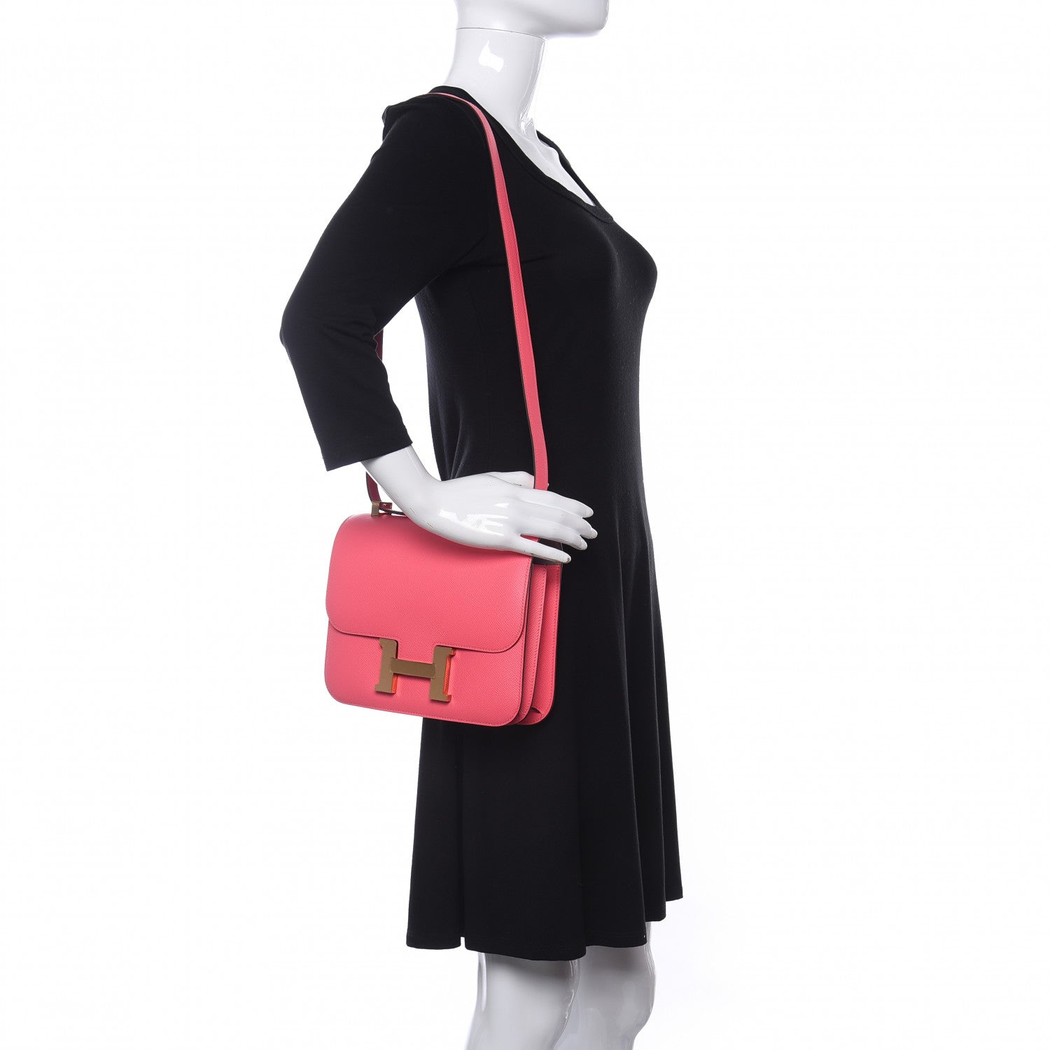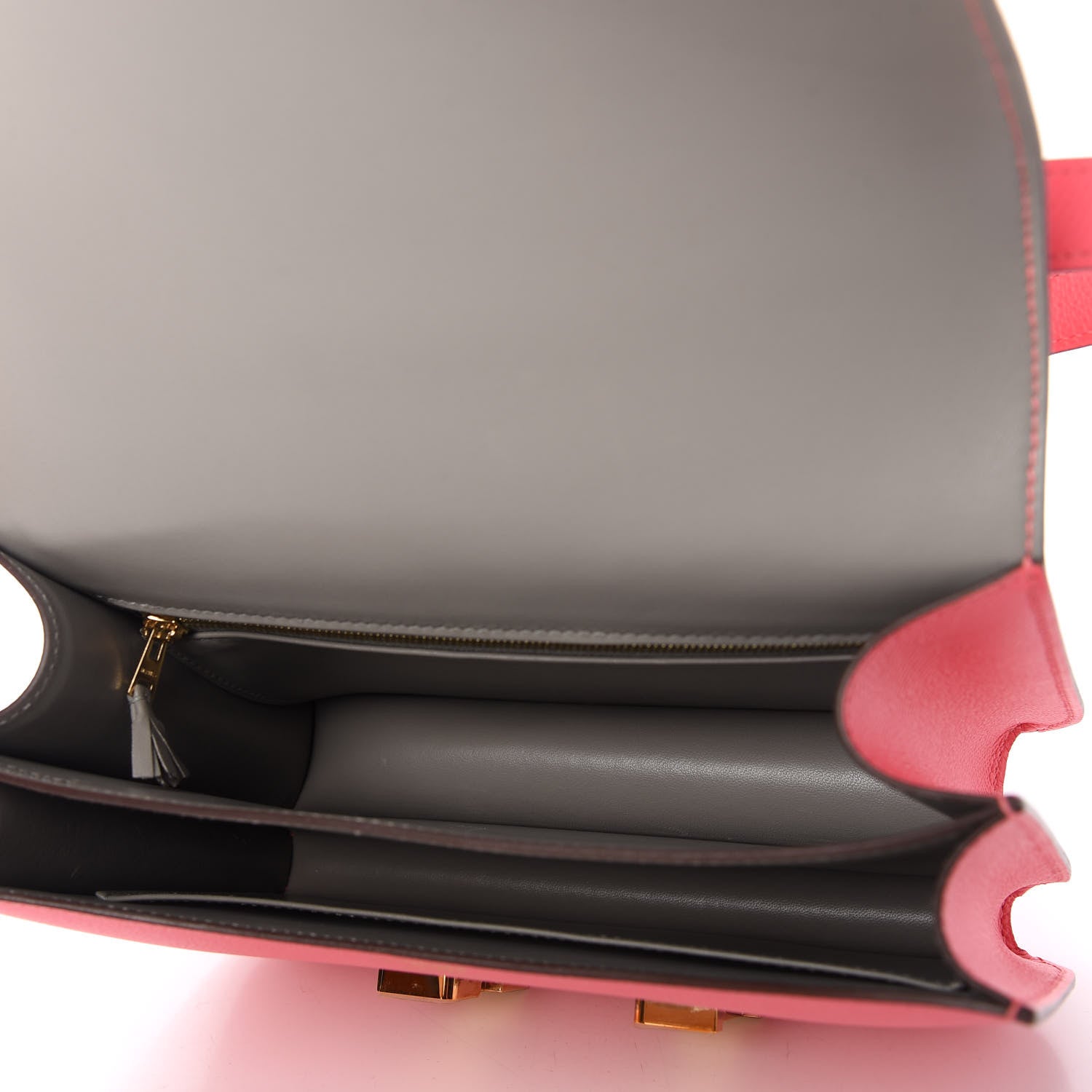 Hermes/ Bags/ Shoulder Bags /Hermes Epsom Horseshoe Constance 24 Rose Azalee Gris Mouette