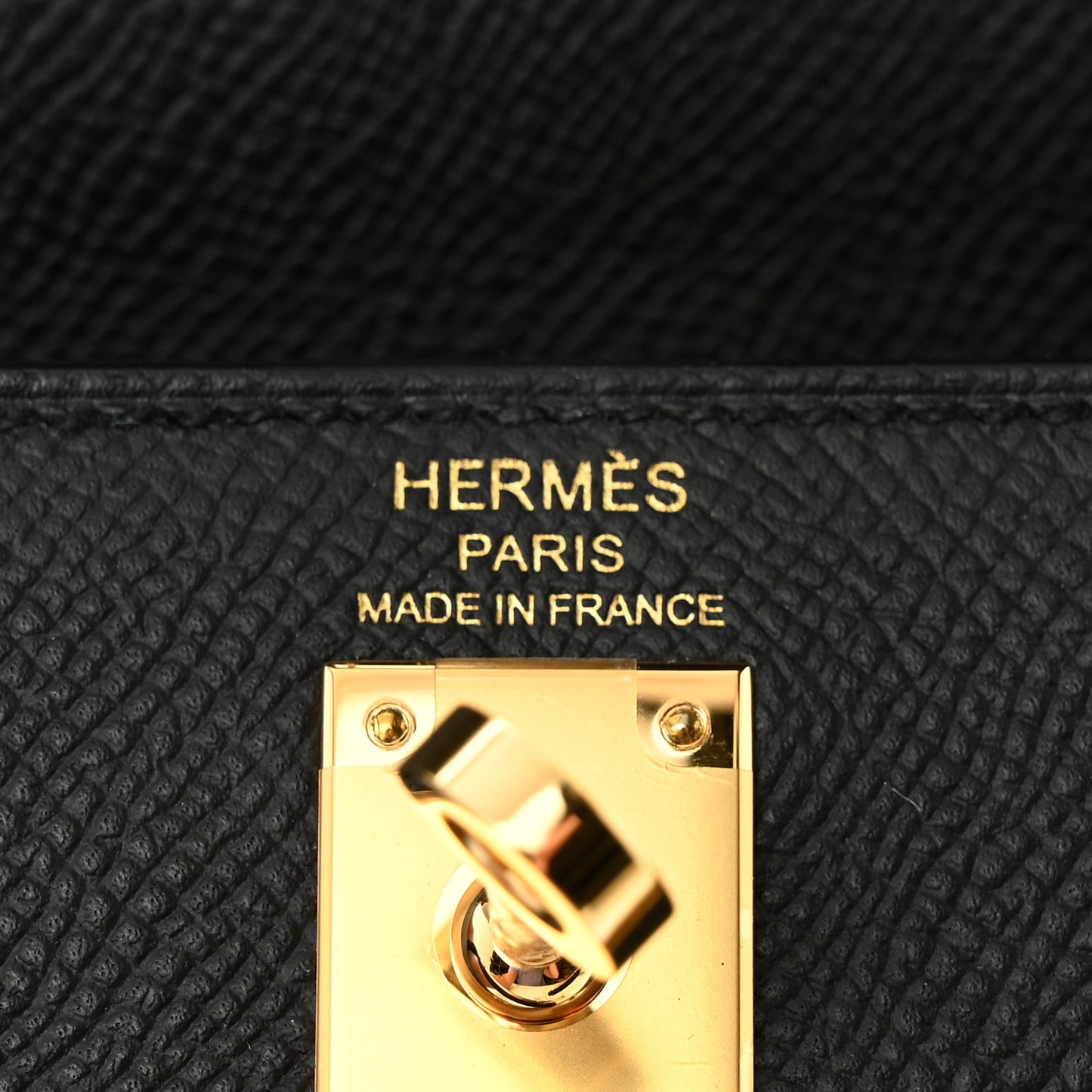 This is an authentic HERMES Epsom Kelly Sellier 25 in Black. This stunning Hermes classic is beautifully crafted of stamped epsom calfskin leather in black. This bag features a leather top handle, optional shoulder strap, gold hardware. The bag opens to a leather interior with zipper and patch pockets.Follow this item for alerts. Hermes is a registered trademark of Hermes. FASHIONPHILE is not affiliated with Hermes.