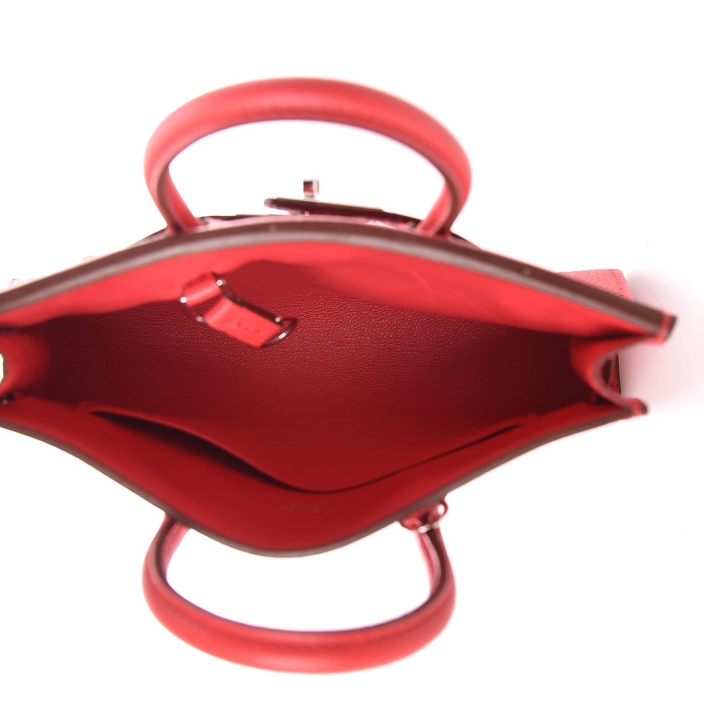 This is an authentic HERMES Epsom Micro Birkin 15 in Bougainvillea. This classic handbag is beautifully crafted of textured epsom leather with a fine grain in red. The bag features rolled leather top handles, an optional strap, a front flap and strap closure with polished silver palladium hardware. The top opens to a matching goatskin leather interior with a flat pocket. This is an excellent handbag, from Hermes!Follow this item for alerts. Hermes is a registered trademark of Hermes. FASHIONPHILE is not affiliated with Hermes.