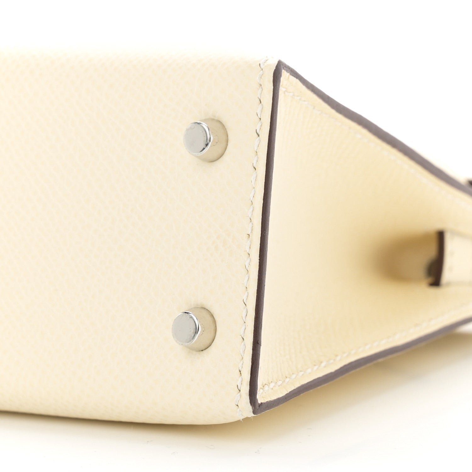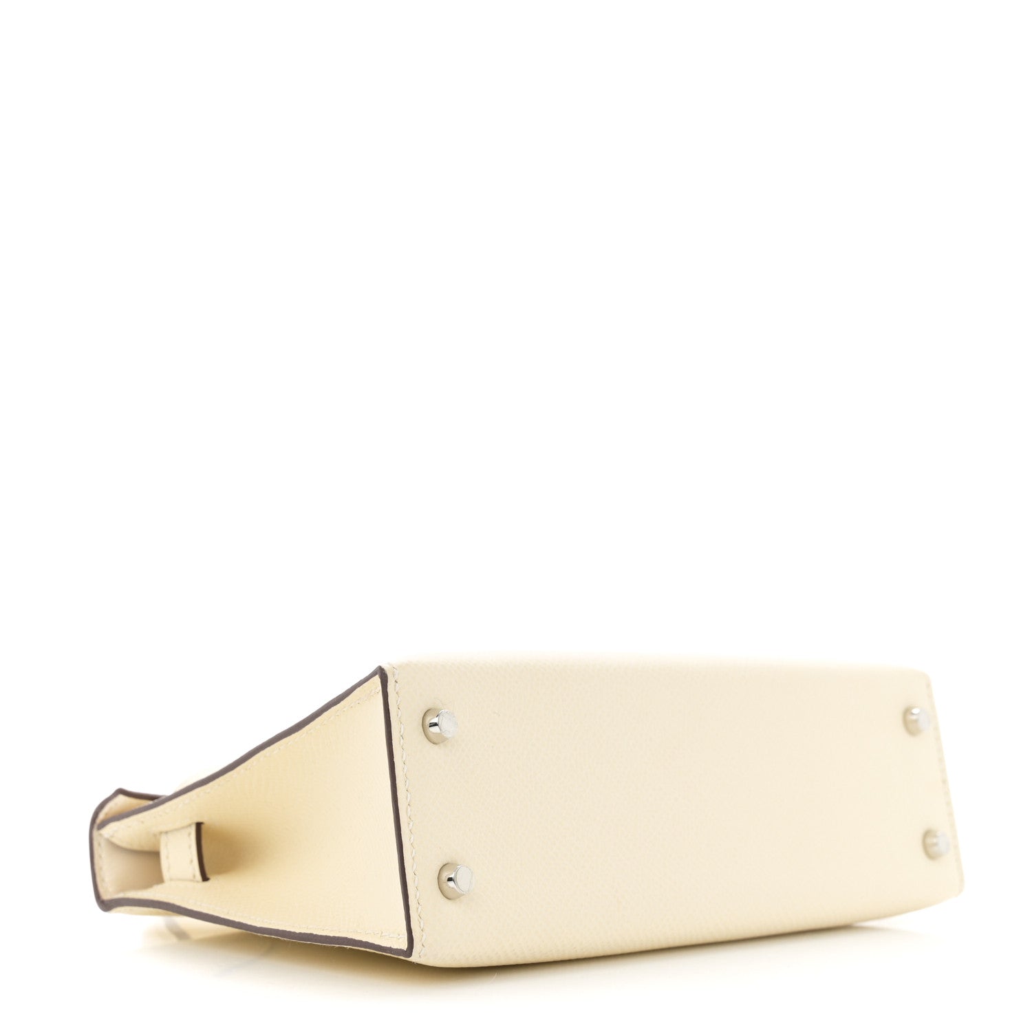 This is an authentic HERMES Epsom Mini Kelly Sellier 20 in Nata. This stunning Hermes classic handbag is beautifully crafted in stamped Epsom calfskin leather in off white. A single rolled leather top handle is secured with silver plated hardware and an optional leather shoulder strap is included. The traditional Kelly turn-lock secures the small flap. The interior features a matching chevre goatskin leather with a single flat pocket.Follow this item for alerts. Hermes is a registered trademark of Hermes. FASHIONPHILE is not affiliated with Hermes.