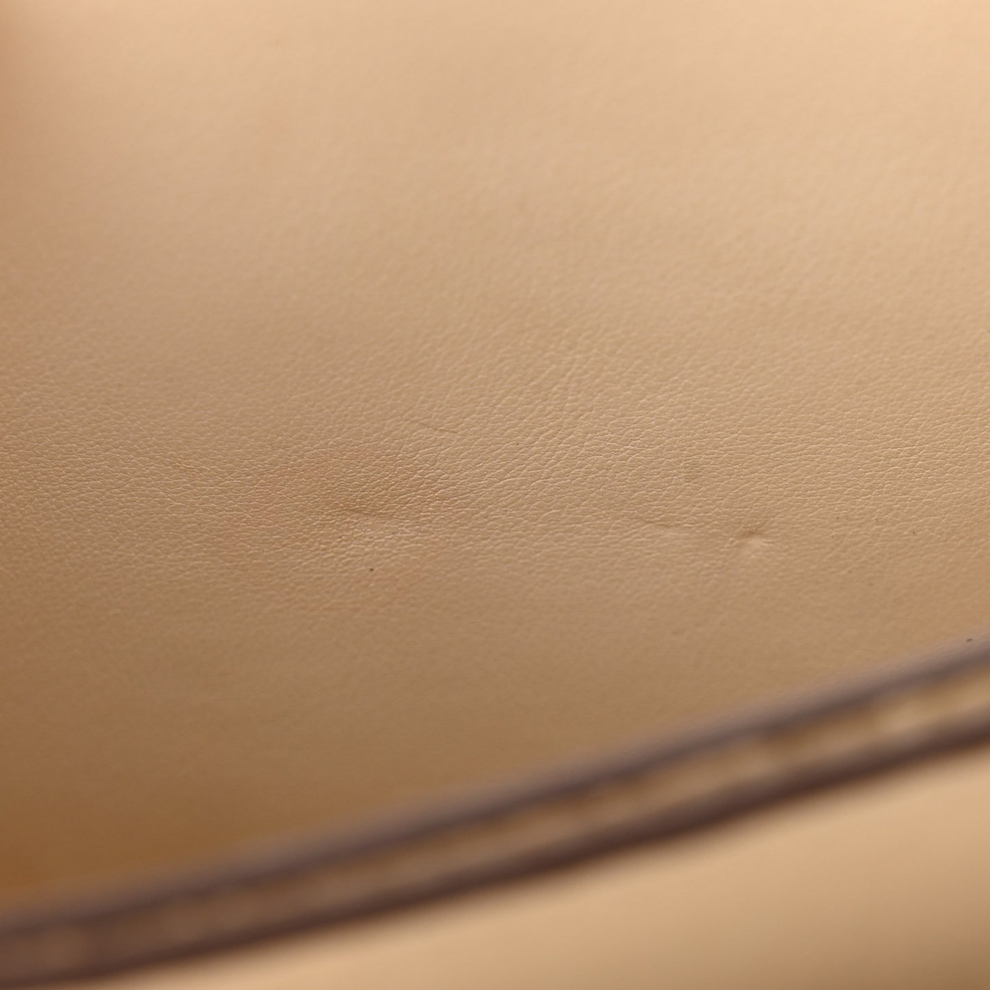This is an authentic HERMES Epsom Mosaique Au 24-17 in Craie. This stunning shoulder bag is beautifully crafted of Epsom calfskin leather in light beige. The bag features a long leather shoulder strap with palladium silver links with a facing full flap that seals with a palladium stylized push closure. The flap opens to a matching partitioned leather interior with a patch pocket.Follow this item for alerts. Hermes is a registered trademark of Hermes. FASHIONPHILE is not affiliated with Hermes.