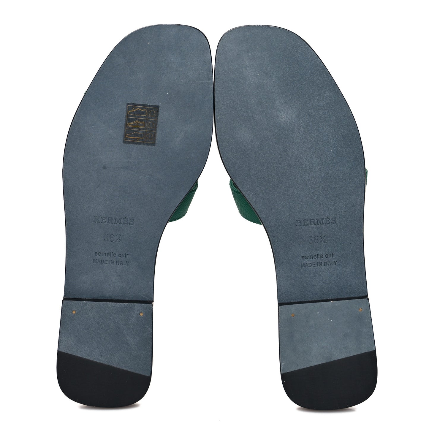 Hermes/ Accessories/ Shoes /Hermes Epsom Oran Sandals 36.5 Vert Cactus